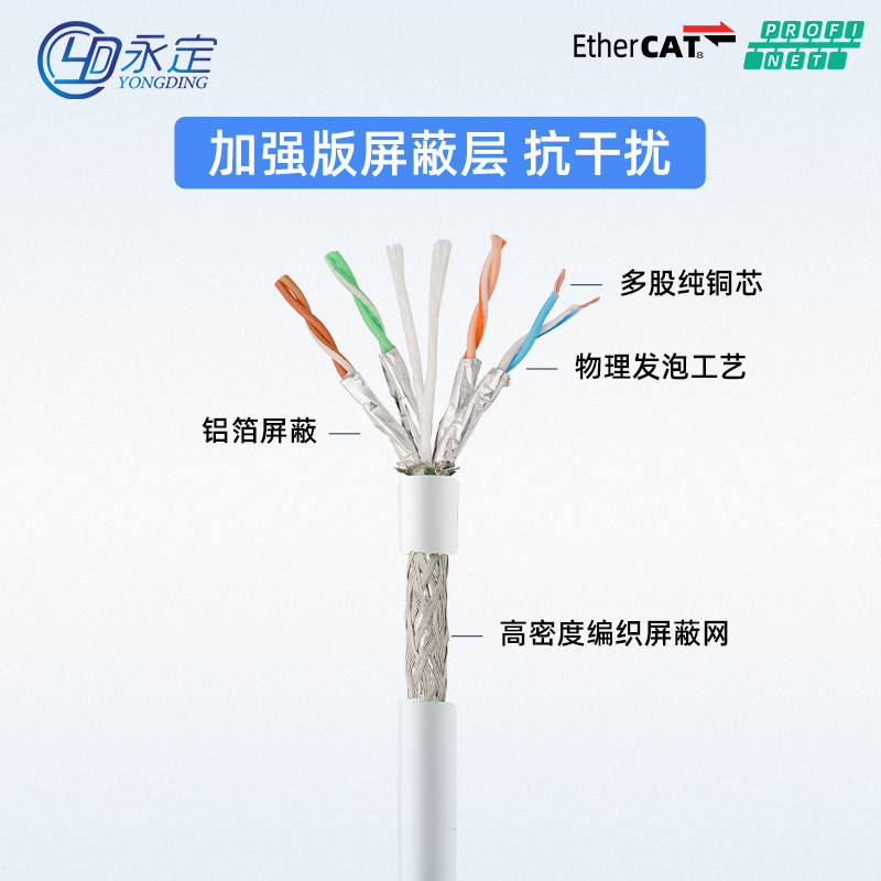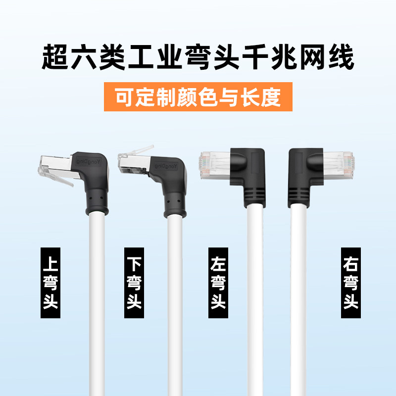 📚 超六类弯头工业网线高柔性profinet屏蔽90°度直角万千兆白色伺服