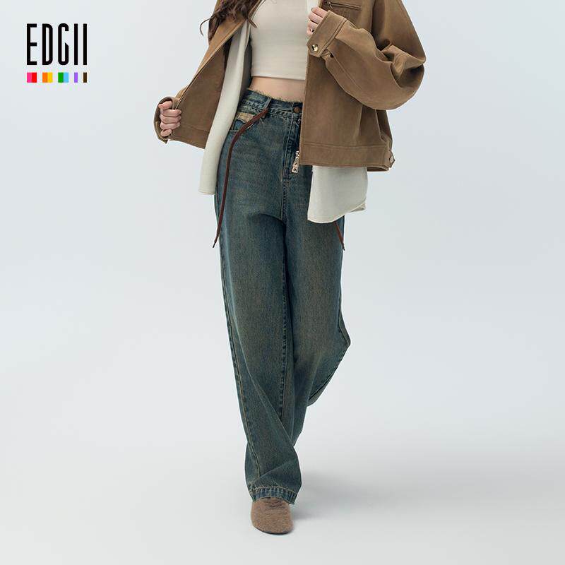 📚 EDGII 2024AW新品牛仔裤巴恩风复古直筒宽松显瘦休闲版女阔腿裤