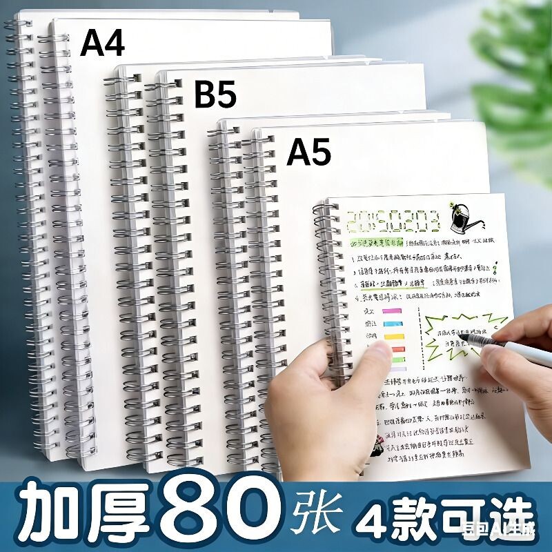 📚 加厚线圈本笔记本本子a5透明考研横线小格子b5小方格网格本高颜值大号A4侧翻活页本初中生高中生专用记事本