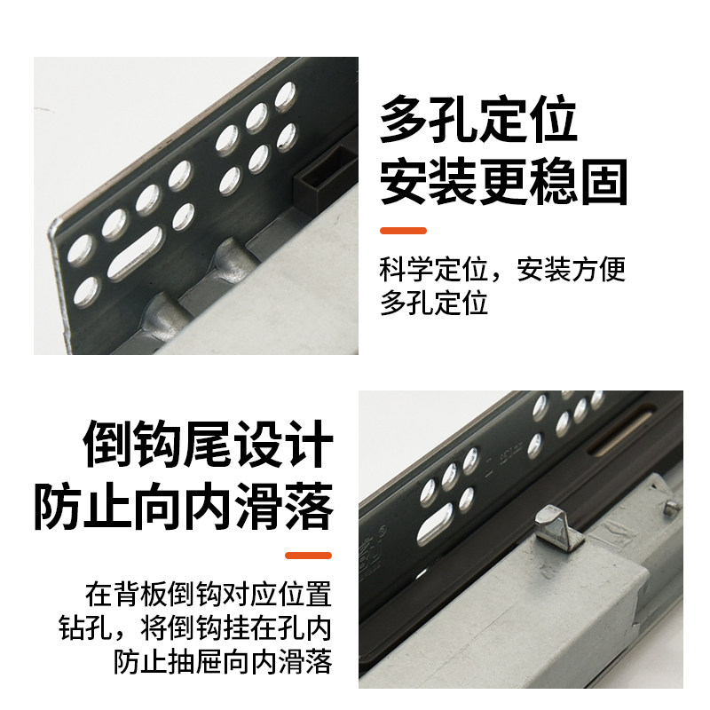 📚 200托底轨道8寸抽屉导轨阻尼滑轨全拉拖底反弹重型轨道安装滑道