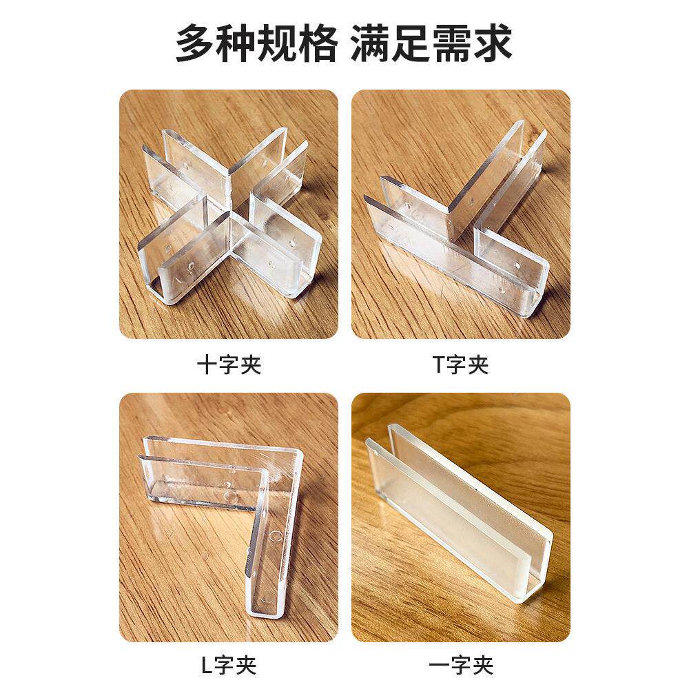 📚 亚克力板固定卡扣有机玻璃固定夹透明十字T型L型鱼缸护角卡槽拼接