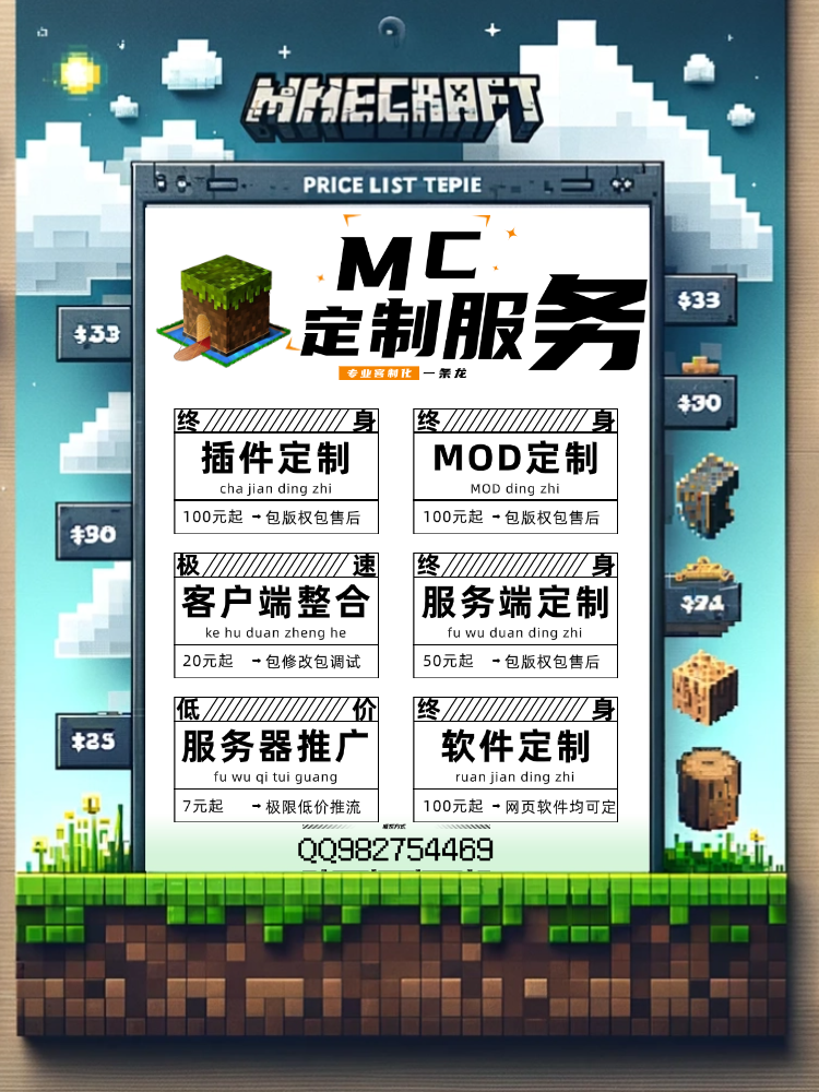 29¥ CZ007 UTFHUMZ1EXm¥ https://m.tb.cn/h.7xREPf2 Minecraft我的世界插件定制mod定制服务端客户端服务器开服配置 --------------------- 【原售价】1元 【现售价】1元。