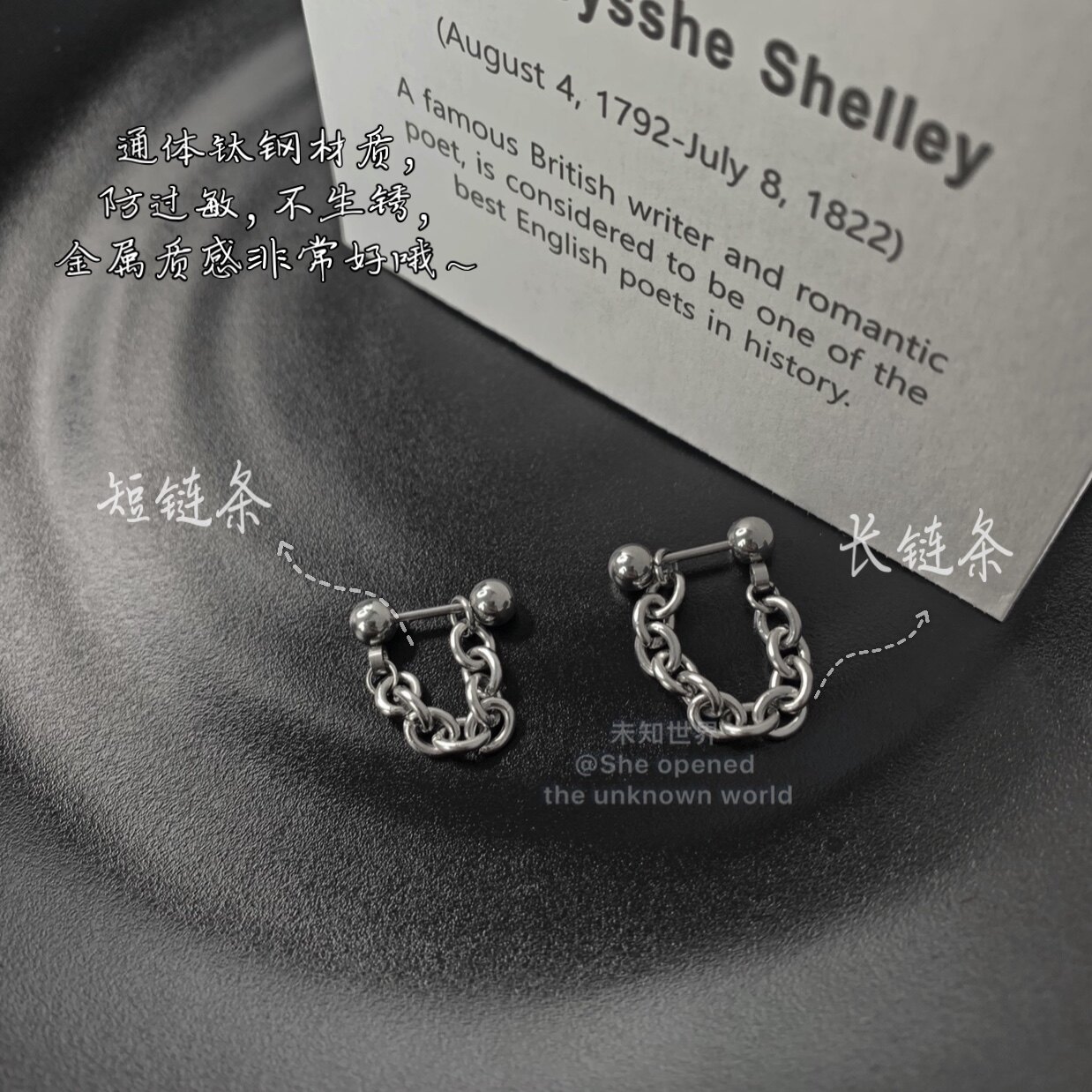 📚 钛合金链条耳钉耳蜗钉2025年新款潮耳钉冷淡风欧美高级感穿刺饰品