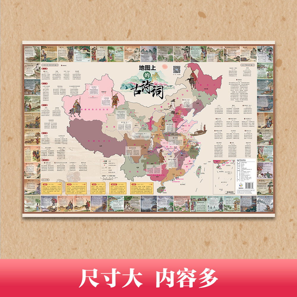 📚 时光学地图上的唐诗宋词地图挂画儿童房中国地理历史国学启蒙地图小学生专用地理历史语文启蒙北斗彩绘诗词地图附音频