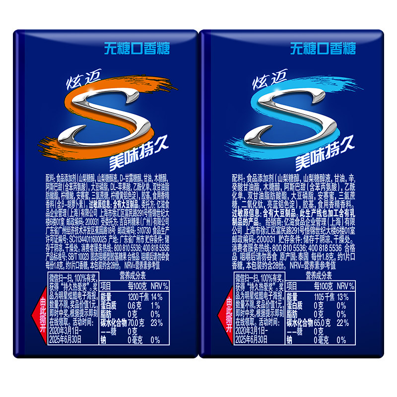 📚 炫迈薄荷鲜果味口香糖果28片*2盒装清新口气