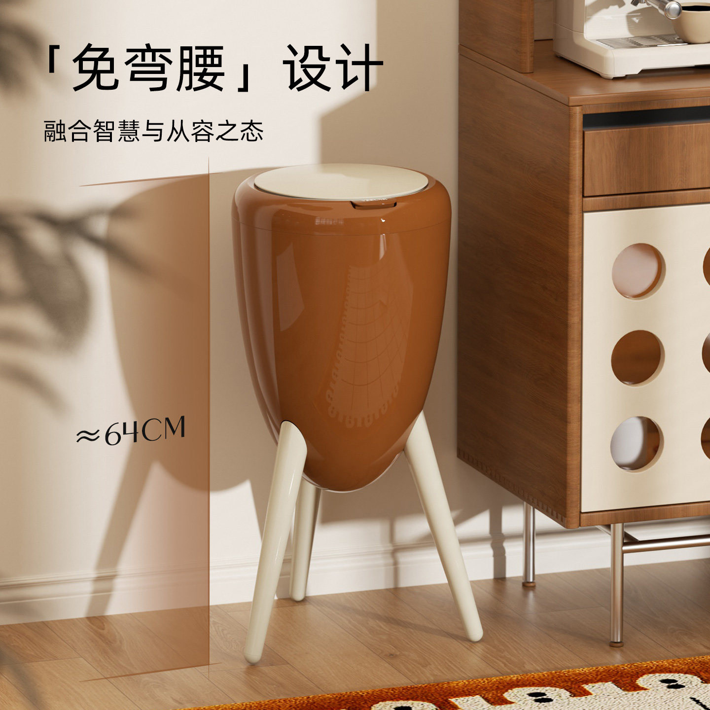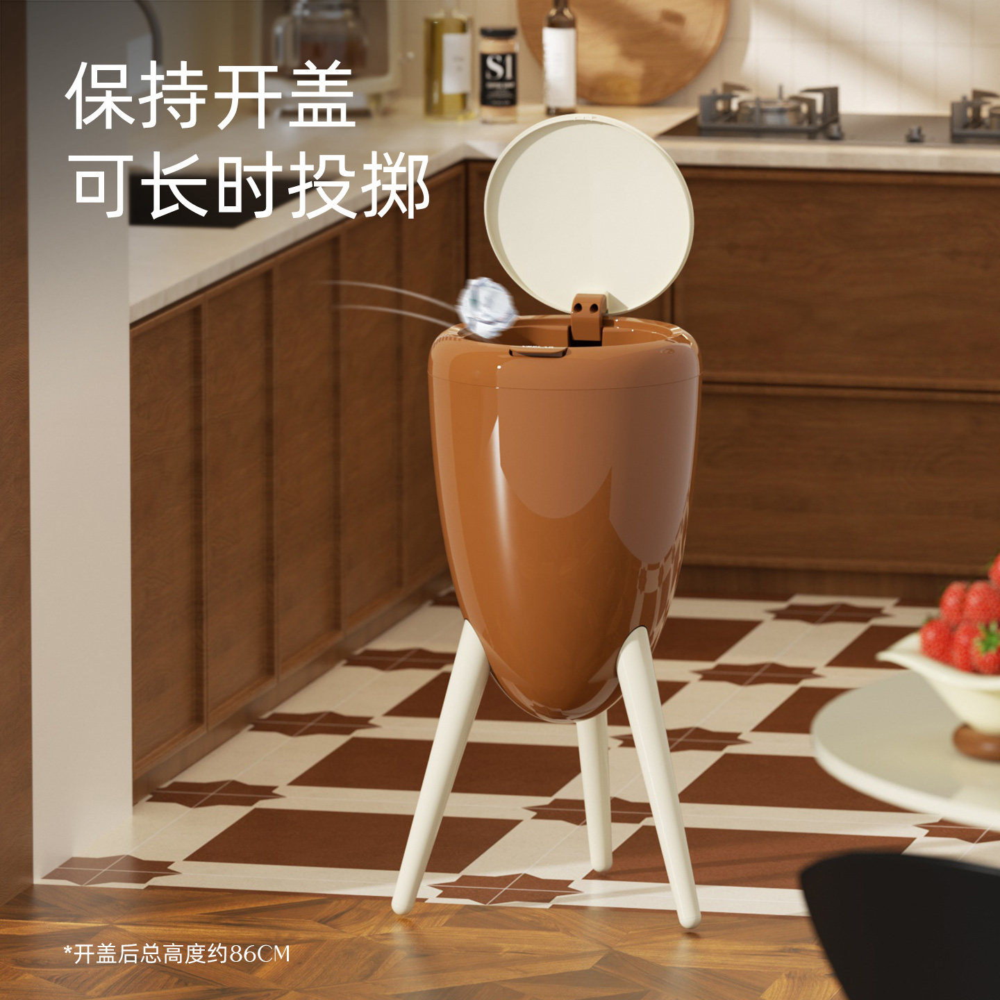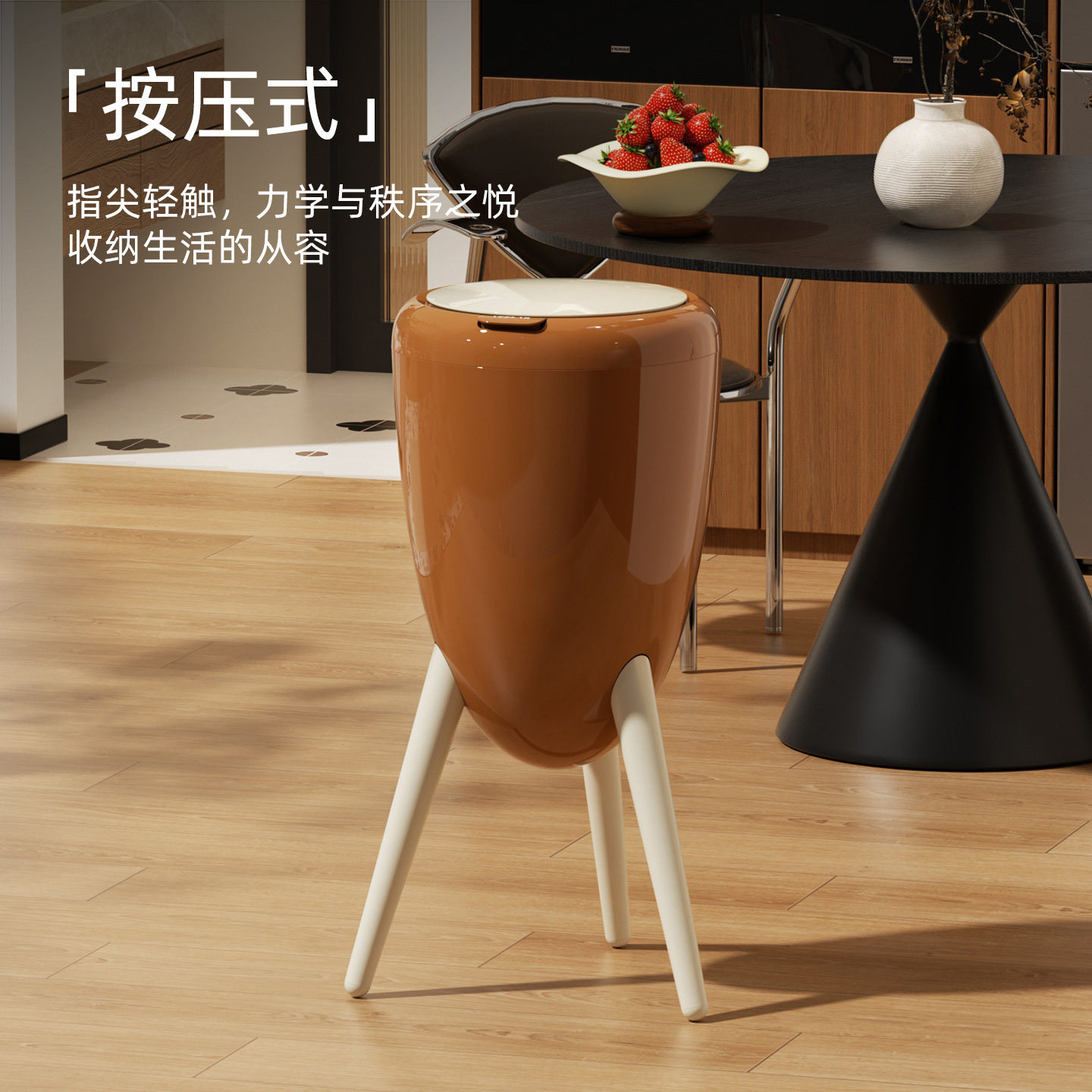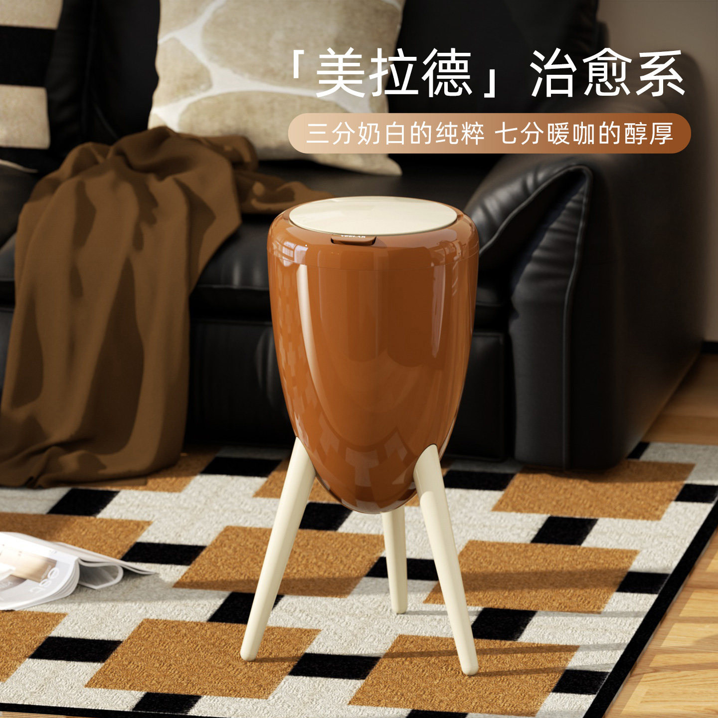 📚 客厅垃圾桶家用2026新款高颜值中古风卧室高脚带盖纸篓大轻奢高档