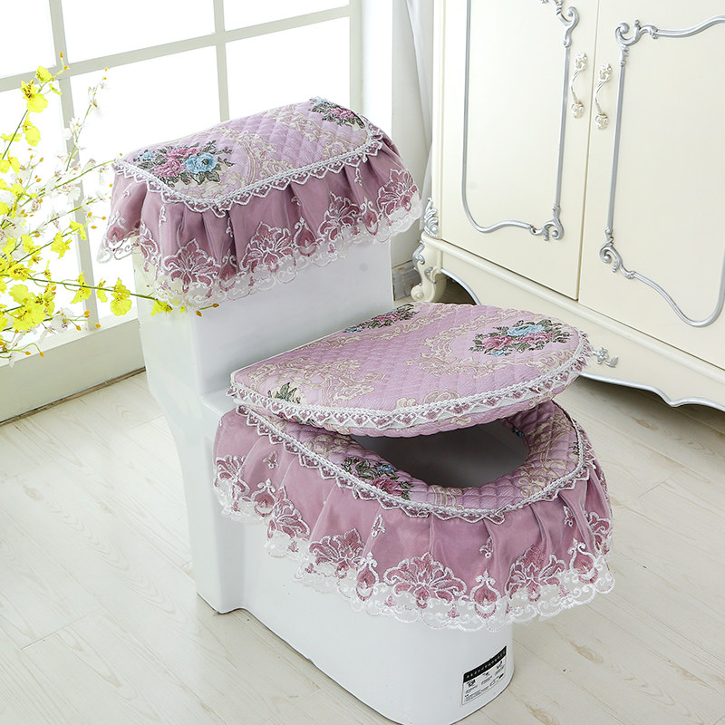 📚 马桶垫坐垫三件套家用蕾丝布艺坐便器垫子马桶圈马桶套坐便套通用