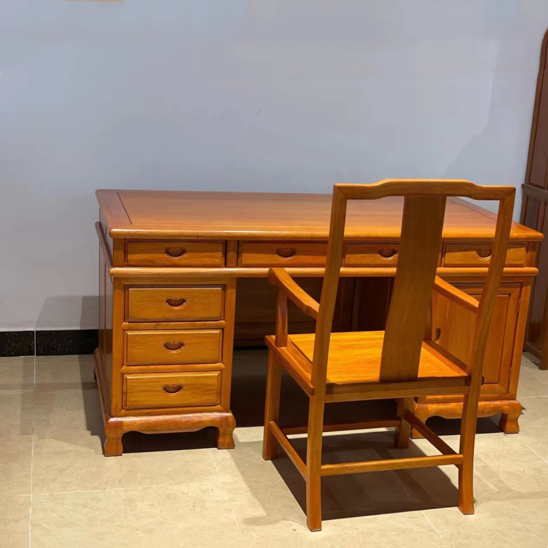 📚 红木家具书桌金花梨木原木写字台全实木家用办公桌椅X新中式办公