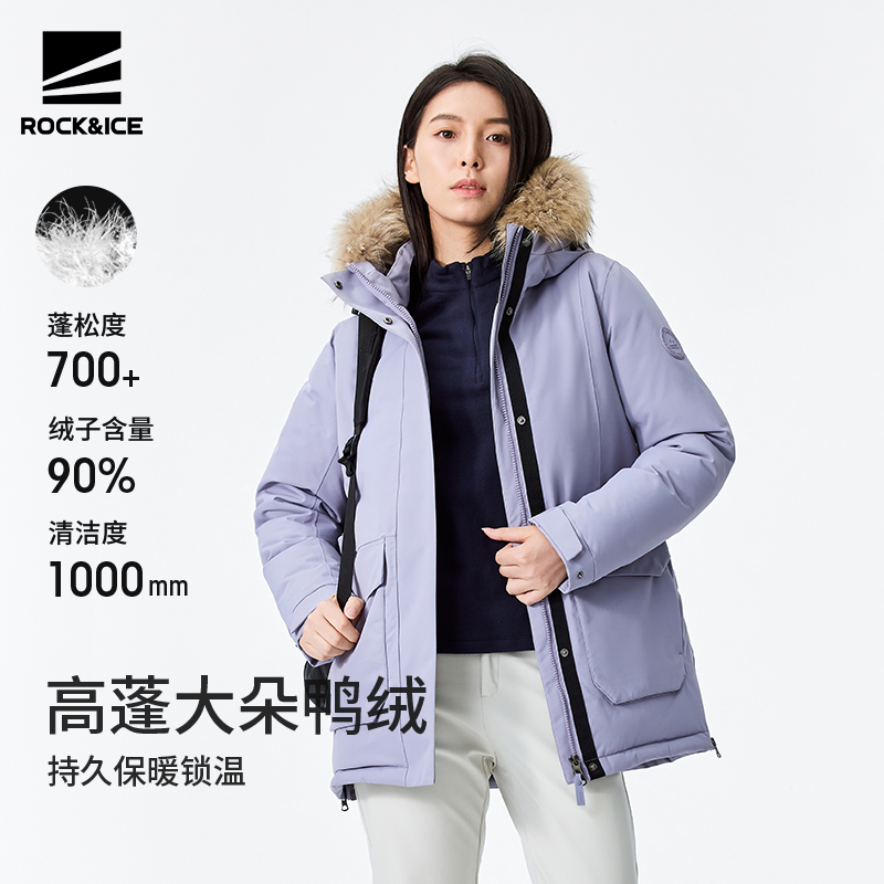 📚 ROCKICE情侣羽绒服女款工装口袋收腰外套中长款防风保暖羽绒衣男