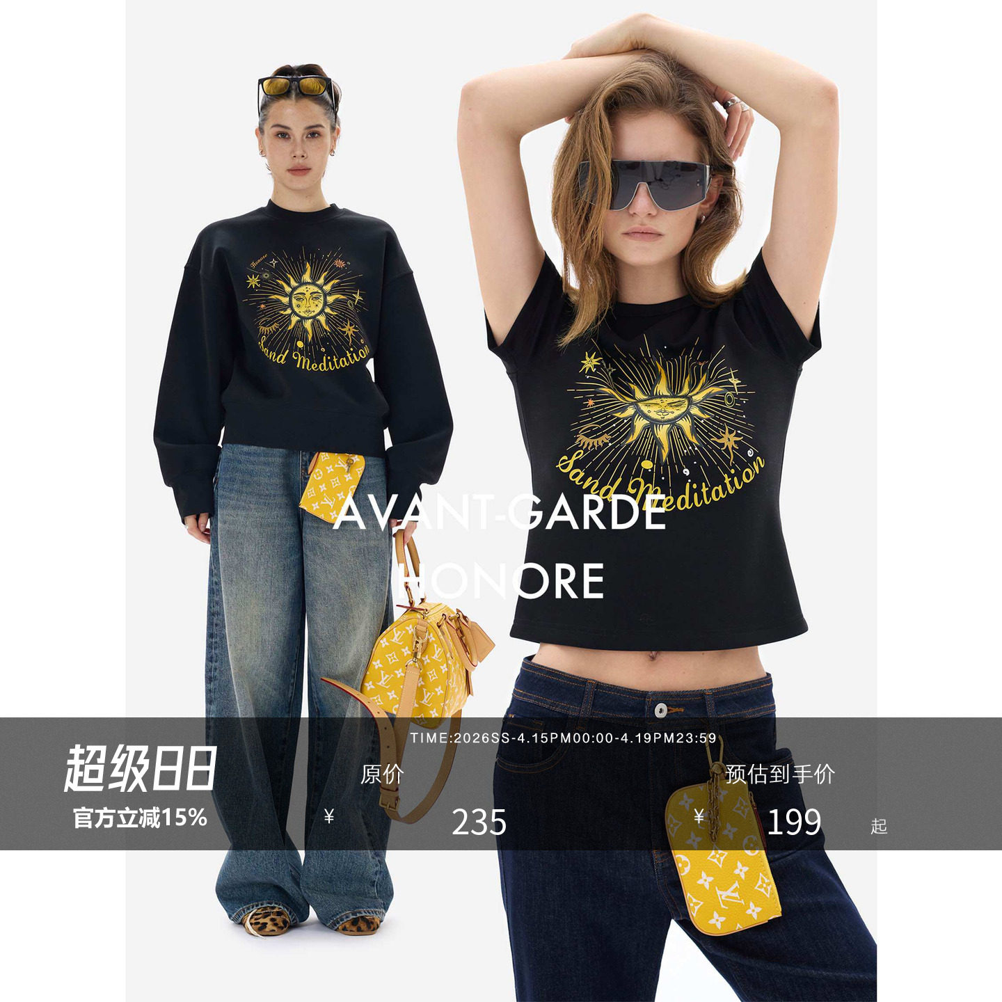 57¥ MF937 mQXS5ThWG1Z¥ https://m.tb.cn/h.iKRAI28 HONORE古月 原创太阳神 复古百搭松弛圆领短款图腾印花卫衣T恤女 --------------------- 【原售价】454元 【现售价】454元。