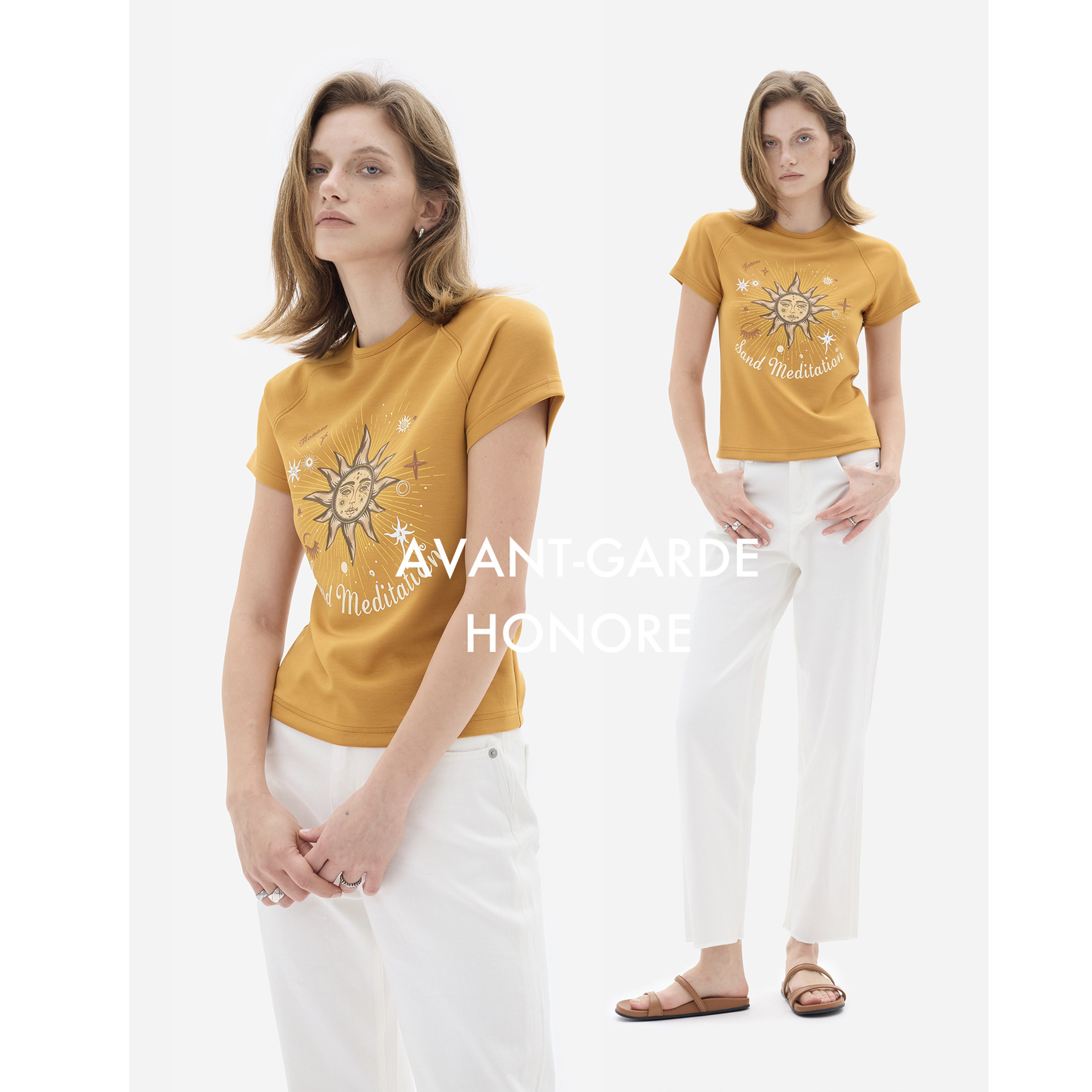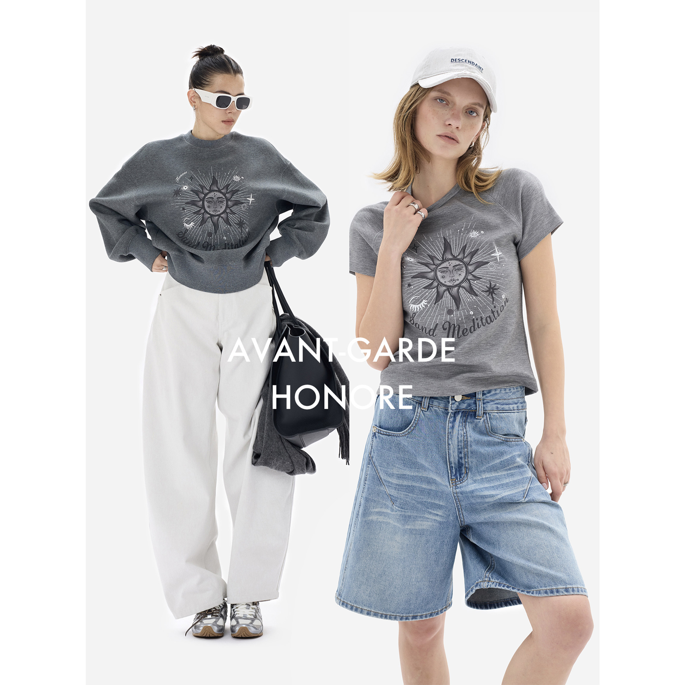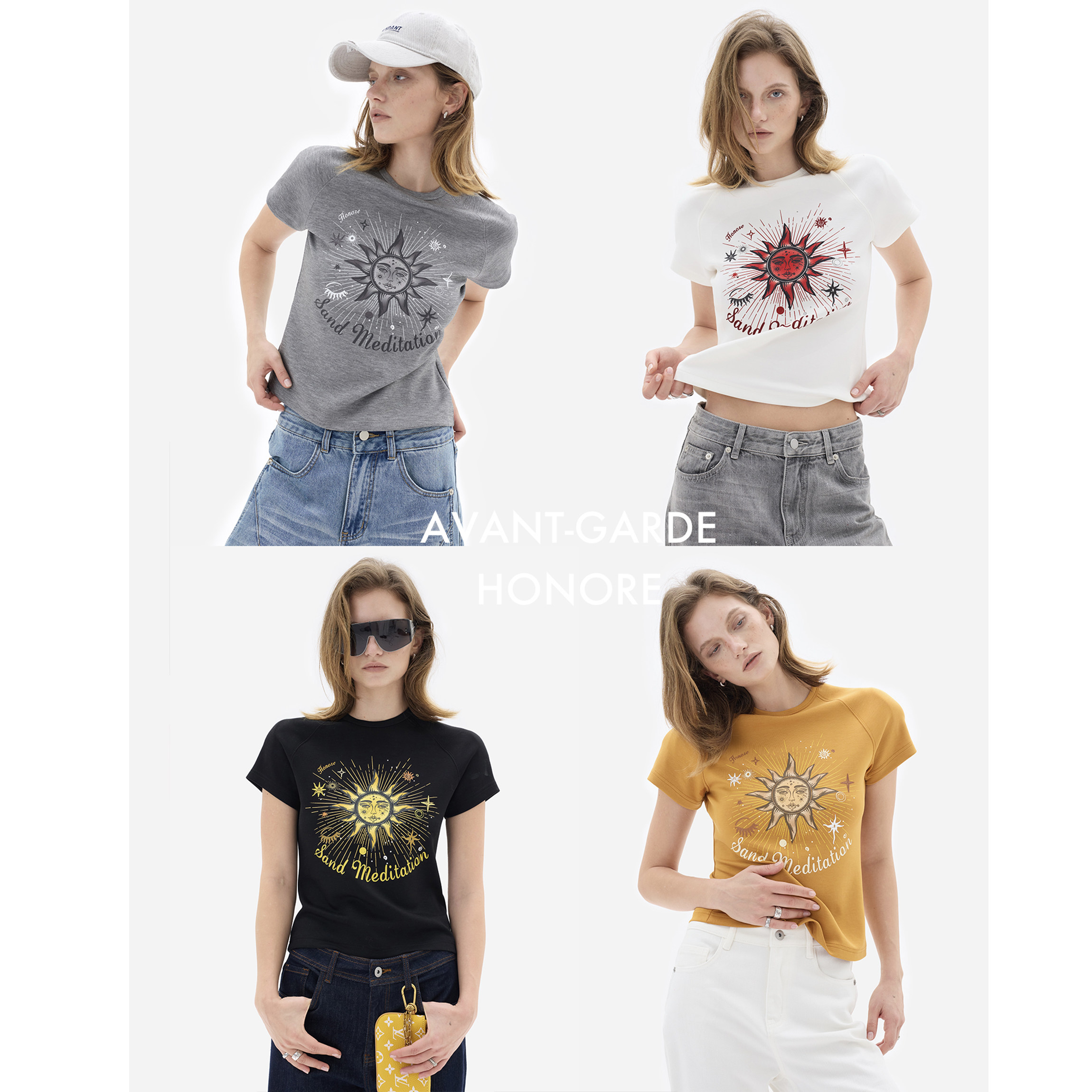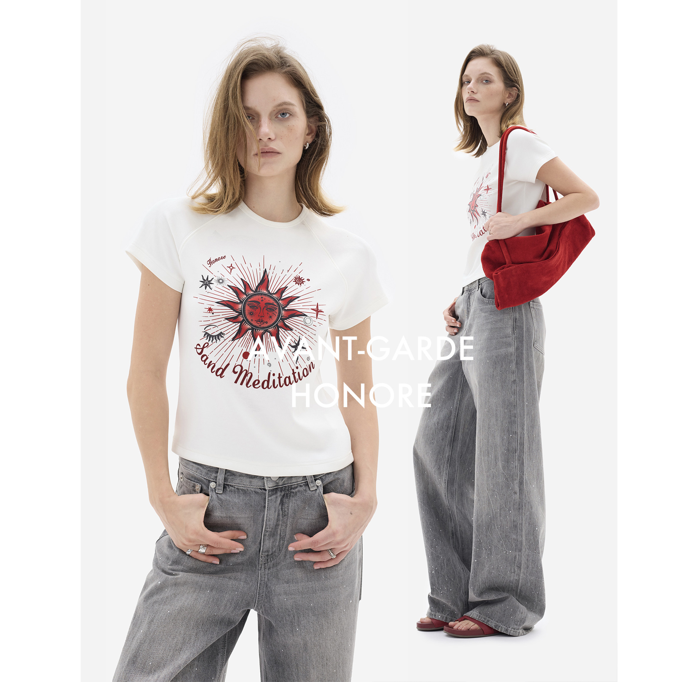 📚 HONORE古月 原创太阳神 复古百搭松弛圆领短款图腾印花卫衣T恤女