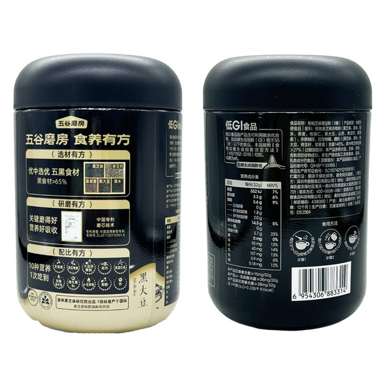 📚 五谷磨房无糖黑芝麻糊核桃黑豆粉黑之养五黑粉健康谷物营养早餐