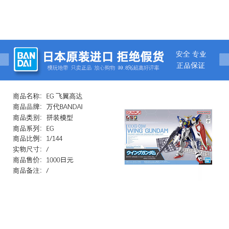 📚 现货 万代 EG 1/144 新机动战记高达 W 飞翼高达 拼装模型