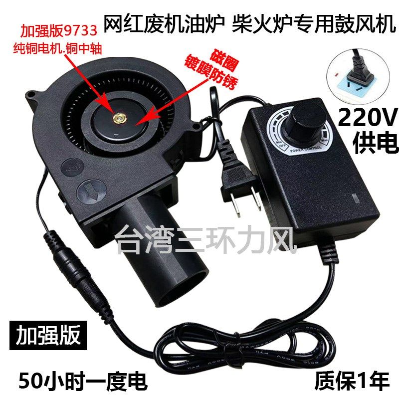 📚 加强版9733鼓风机 废油炉 柴火灶家用220V转12V 大风量调速鼓风机