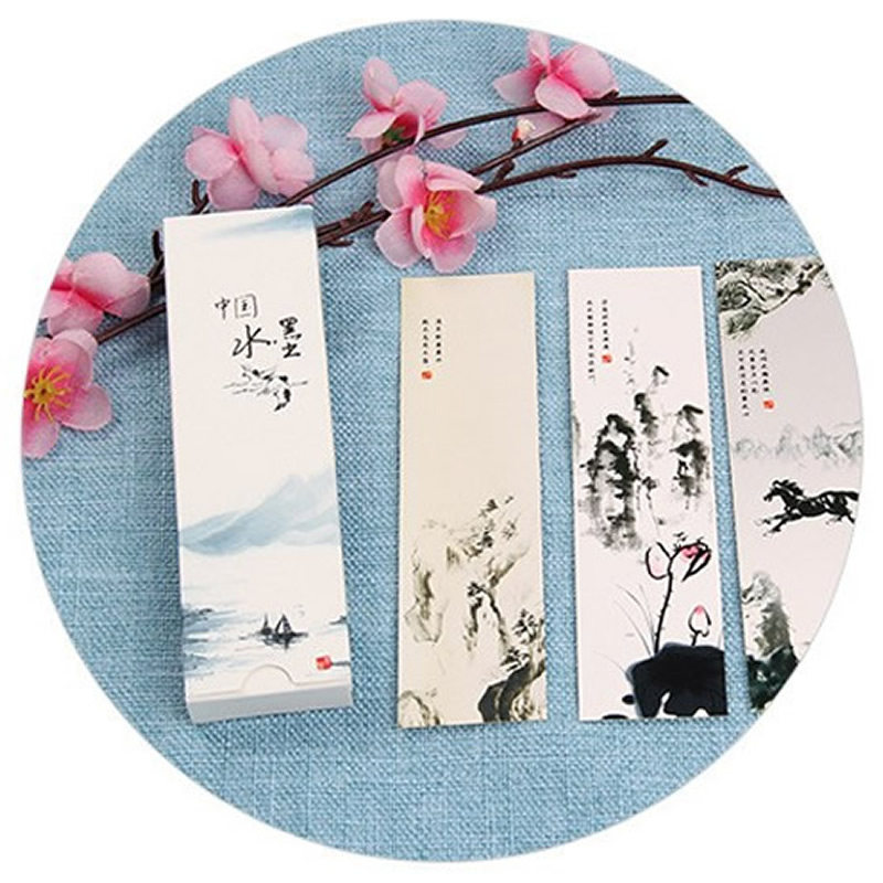 📚 《水墨中国》30张书签纸卡古典诗词水墨插画创意文具学生礼品礼物中考高考儿童阅读纸质书签文创文艺励志书签