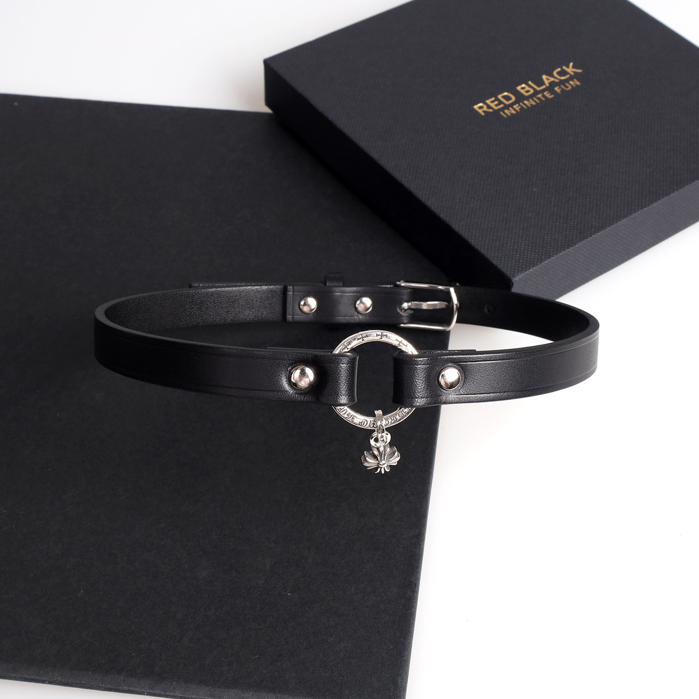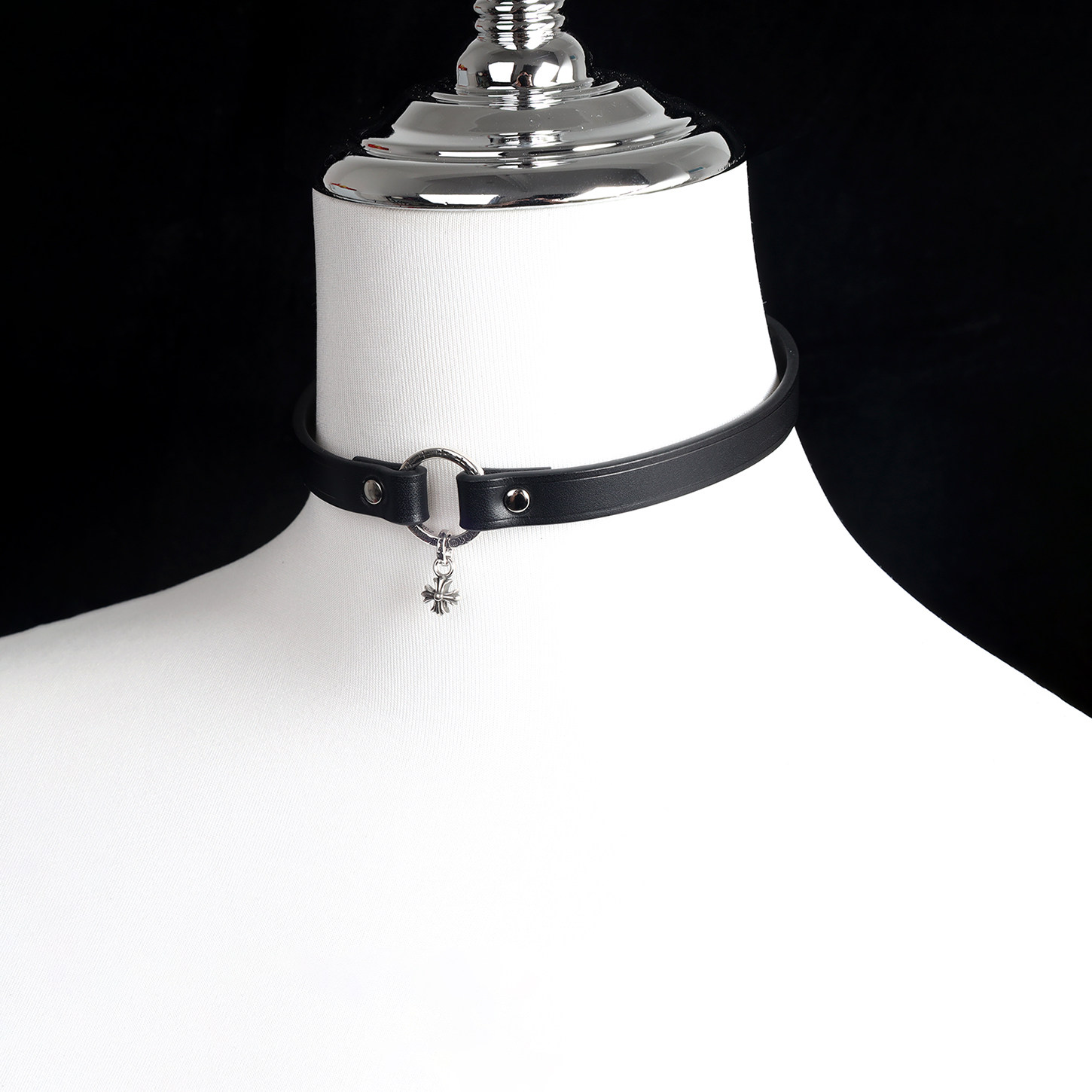 📚 原创小雏菊925银吊坠女项圈朋克个性皮质十字架choker锁骨链颈带