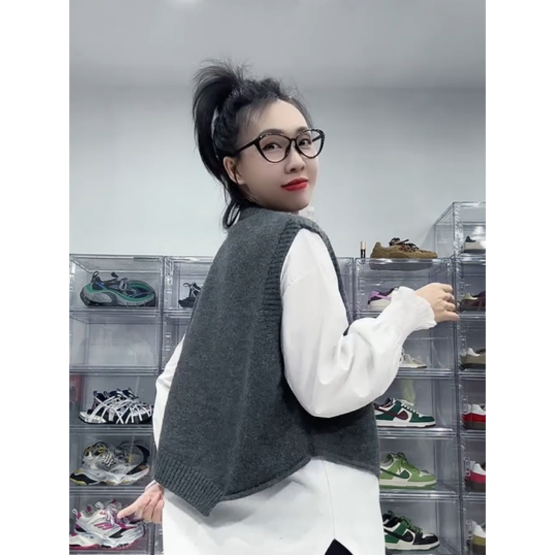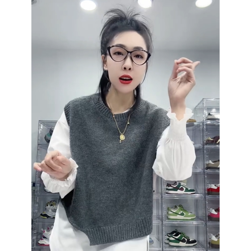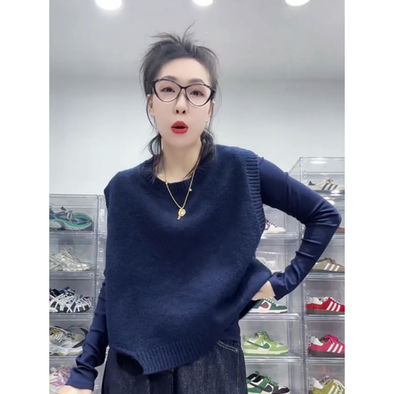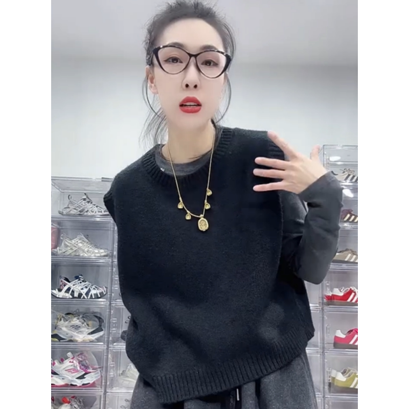 📚 2025秋季新款不规则圆领坎肩针织马甲女宽松别致短款叠穿毛衣背心