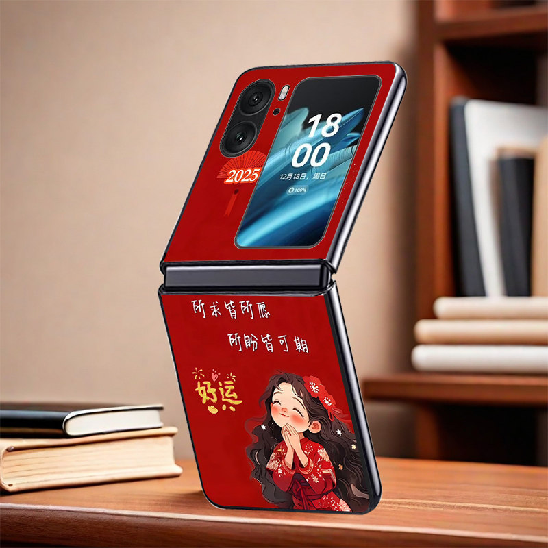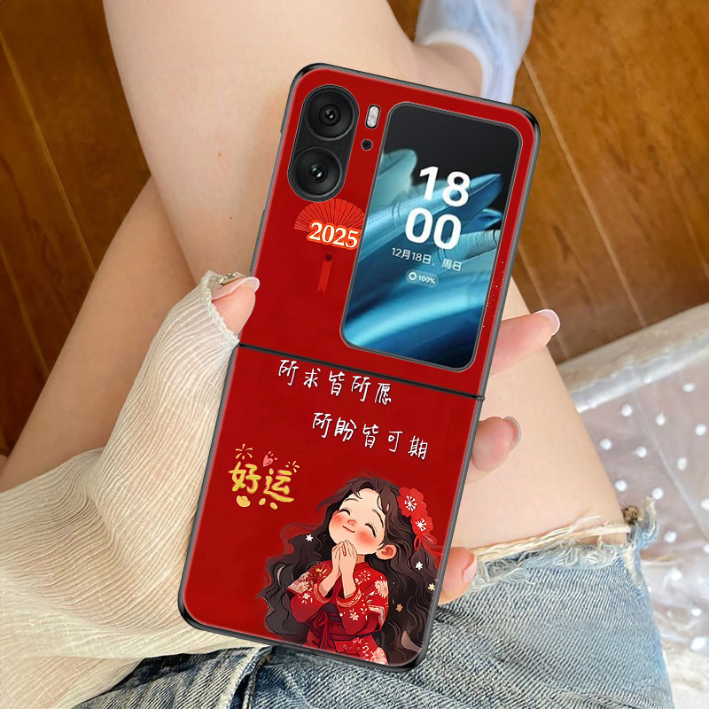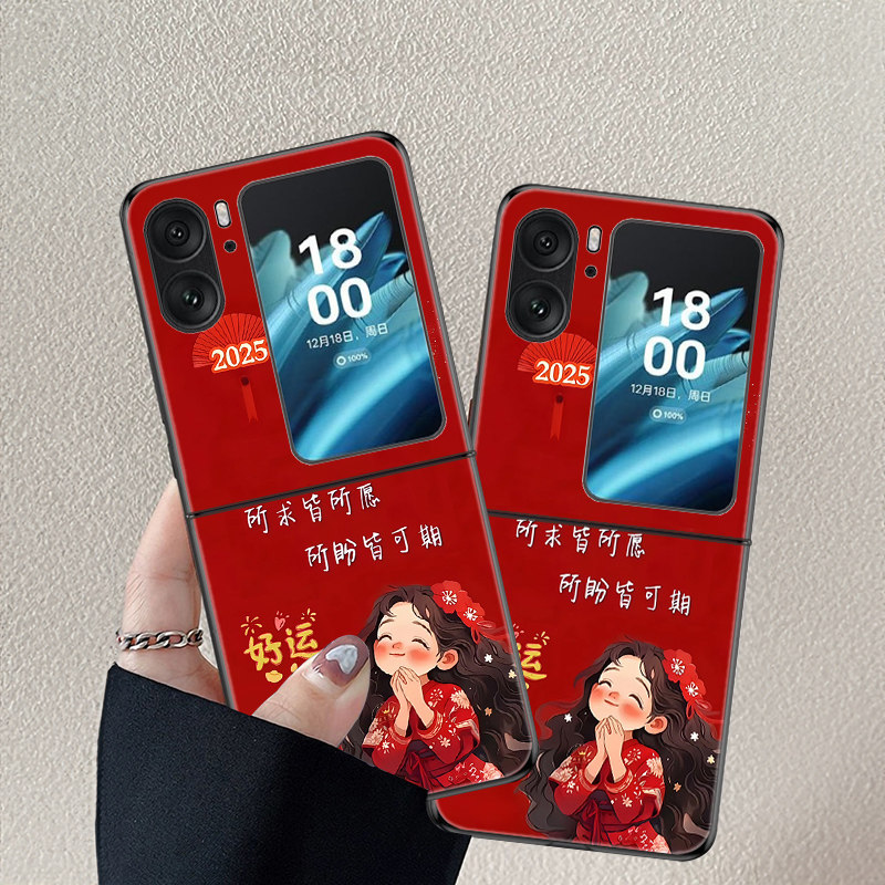 📚 适用OPPOFindN2Flip手机壳OPPOFindN3Flip折叠屏新款高颜值防摔保护套好运女孩所求皆所愿网红简约个性创意潮