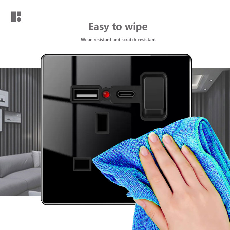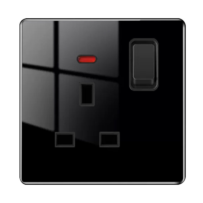 📚 玻璃黑色港版英式13A方孔插座英标电制面板灯制冷气开关20A曲架