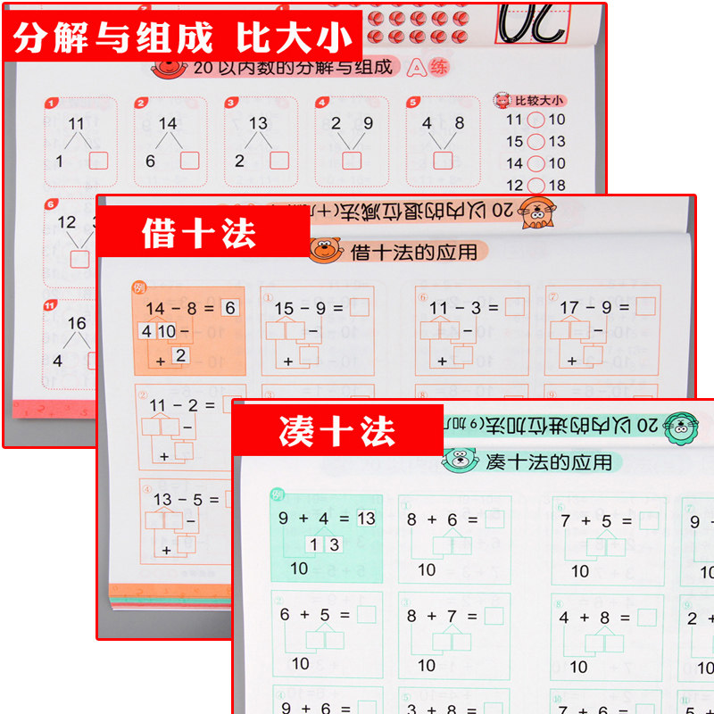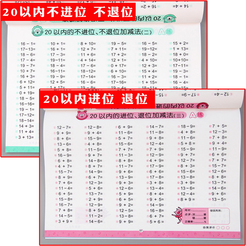 📚 幼小衔接20以内加减法混合口算天天练借十法和凑十法幼儿园中班大班学前班数学题升一年级上册数学口算题卡二十以内加减法口诀表