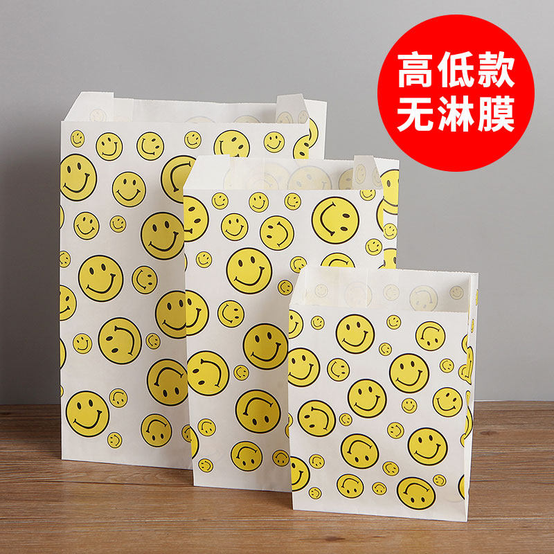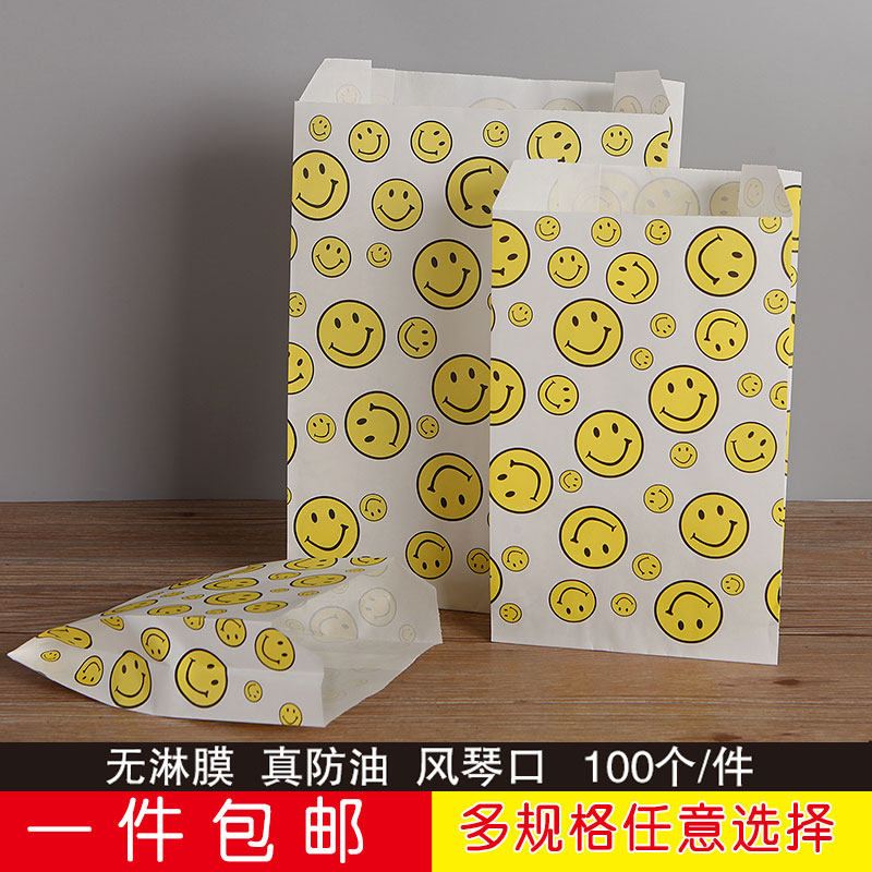 📚 防油纸袋 蛋挞薯条袋一次性小吃袋食品包装纸袋 笑脸袋子8捆包邮