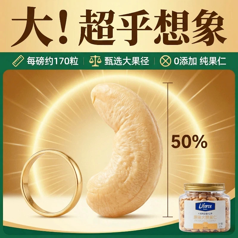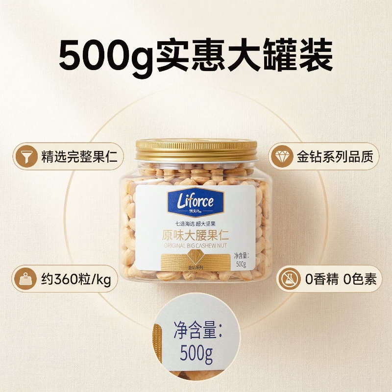 📚 列夫PLUS原香大腰果仁越南大颗粒头道大果配料简单罐装500g