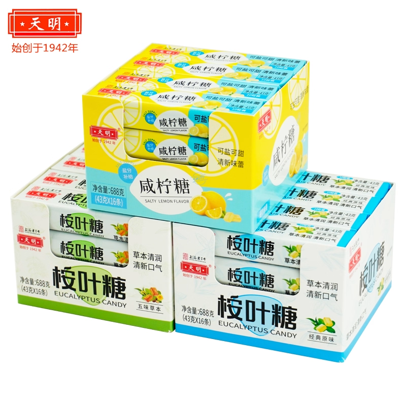 📚 上海天明桉叶糖咸柠糖补充盐分冰爽清凉薄荷糖润喉桉叶糖43g*16条