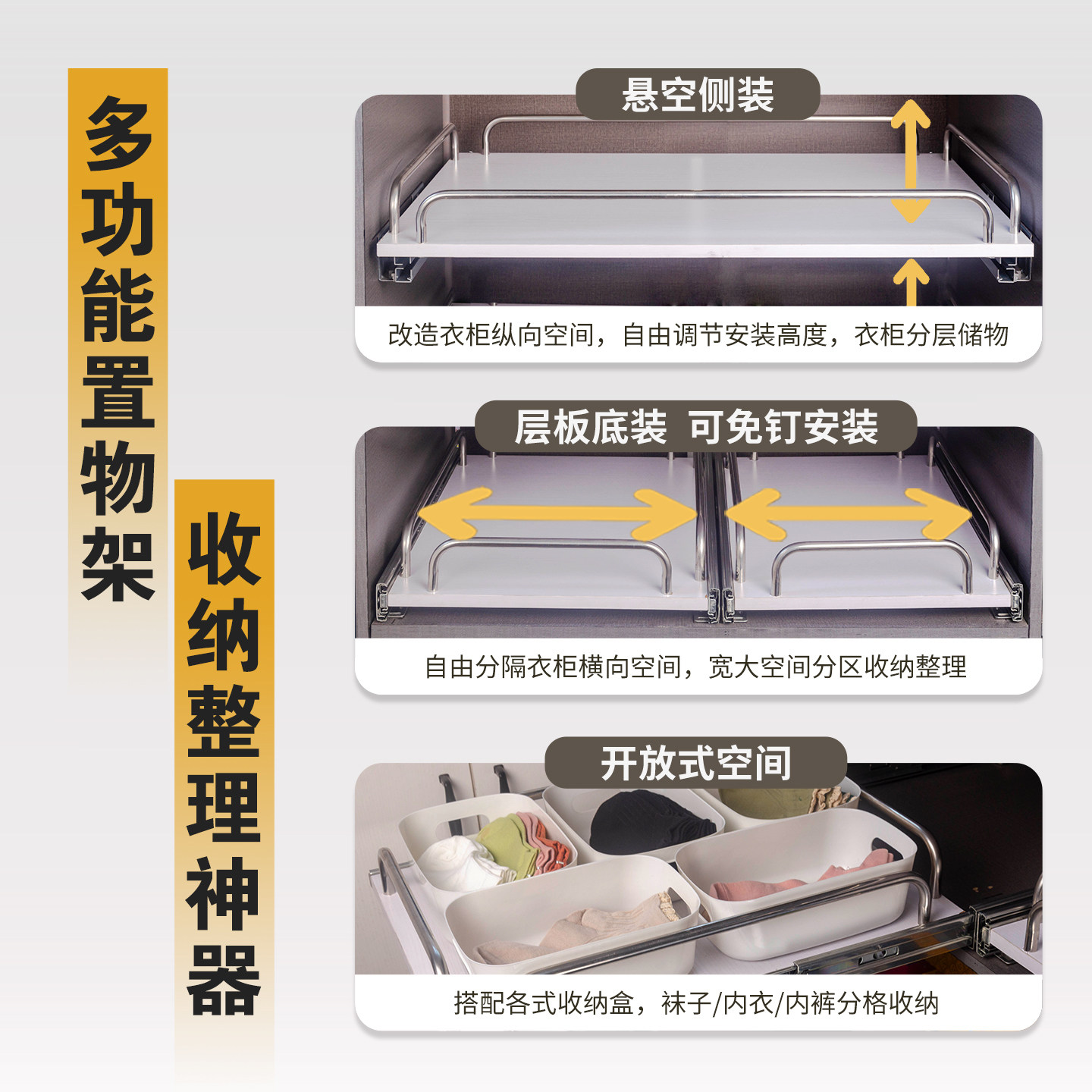 📚 衣柜收纳抽屉置物架可侧装拉篮柜内免打孔改造整理架抽拉式分隔板