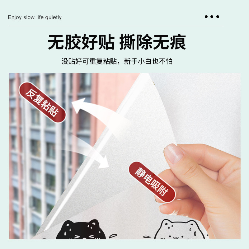 📚 浴室玻璃贴纸防走光透光不透明可爱卡通装饰卫生间推拉门磨砂贴膜