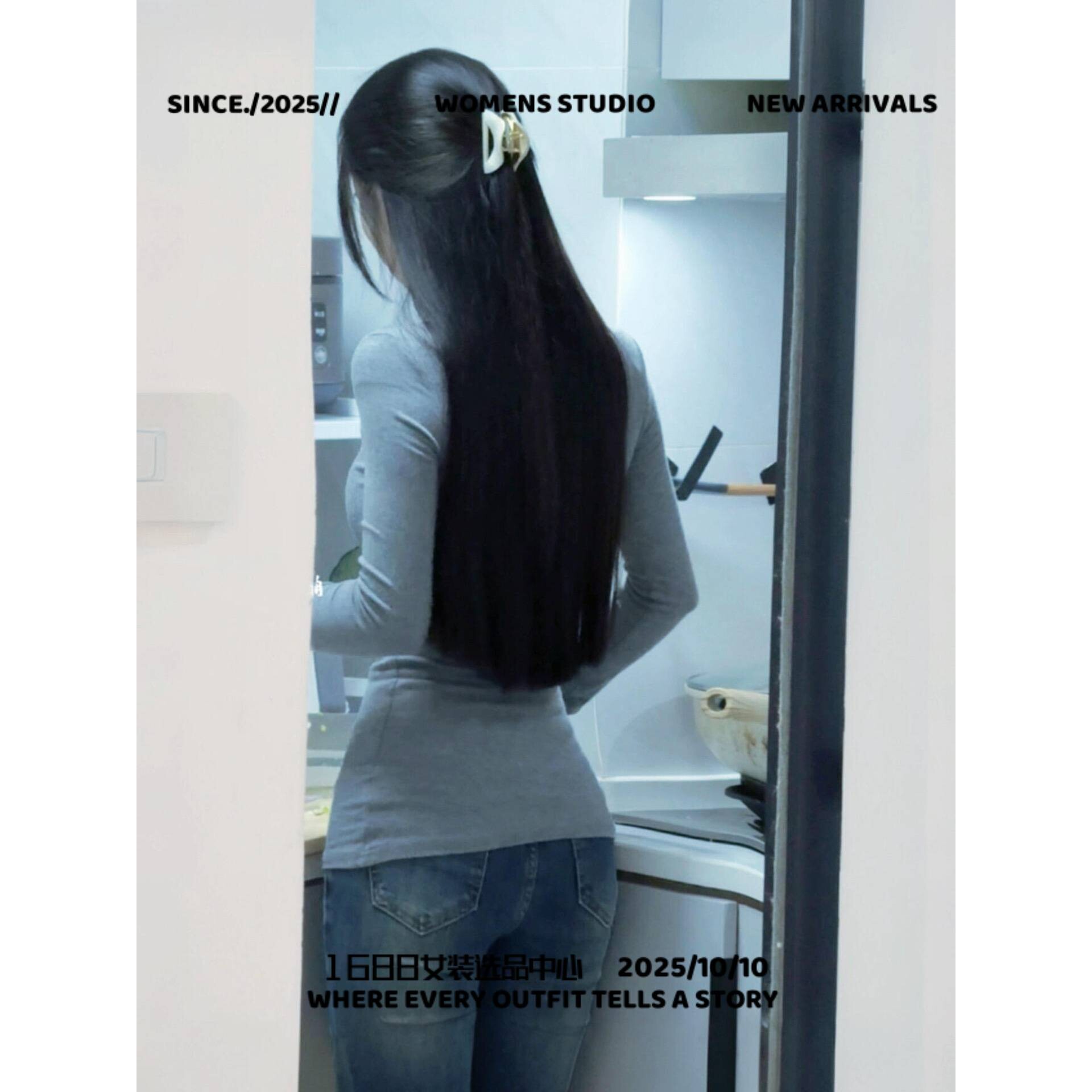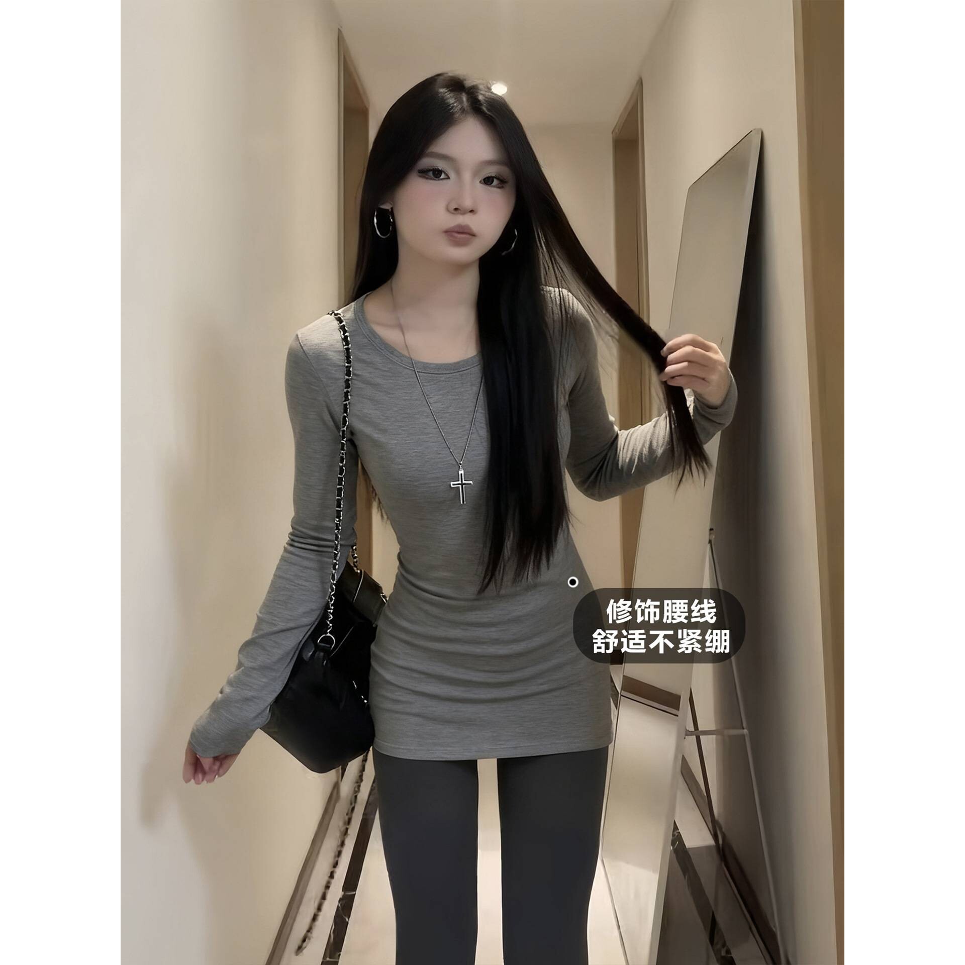📚 苏州东展羽绒服饰灰色修身打底衫女内搭冬新款加绒长袖恤显瘦遮屁