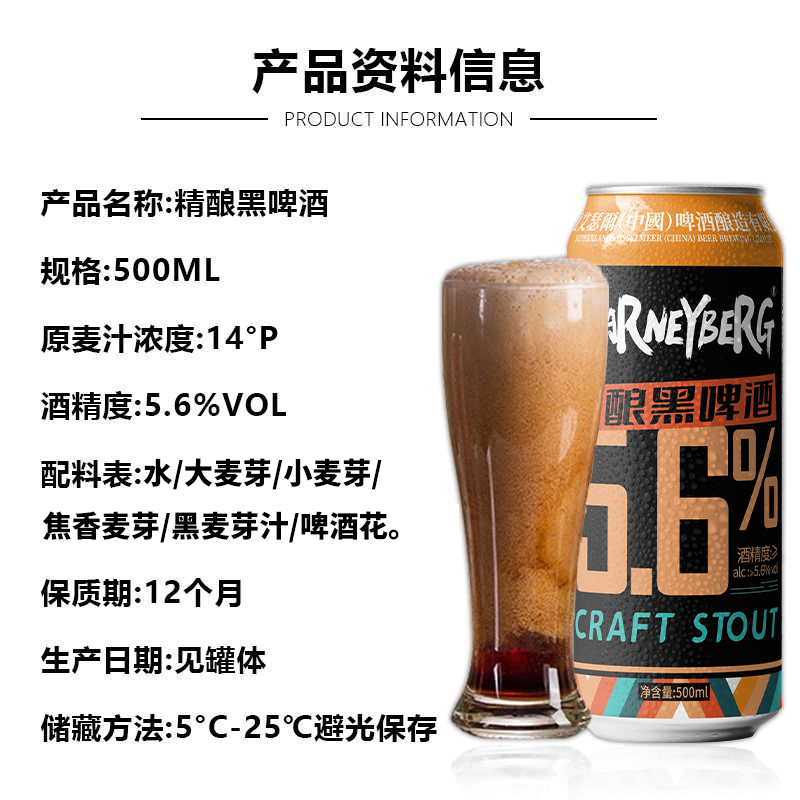 📚 沃尼伯格精酿黑啤酒14度500ml*12/24瓶罐装整箱特价清仓非临期酒