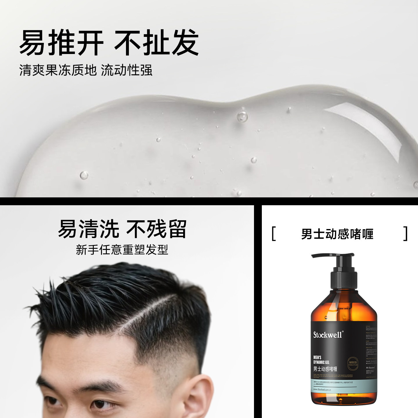 📚 Stockwell啫喱膏男士定型保湿啫喱水发胶强力发蜡泥油头背头清香