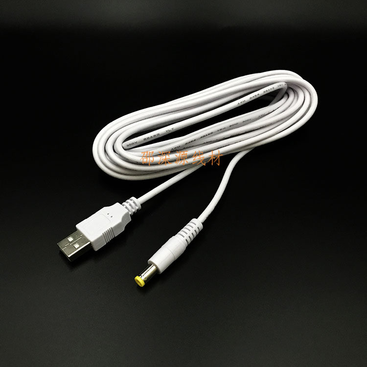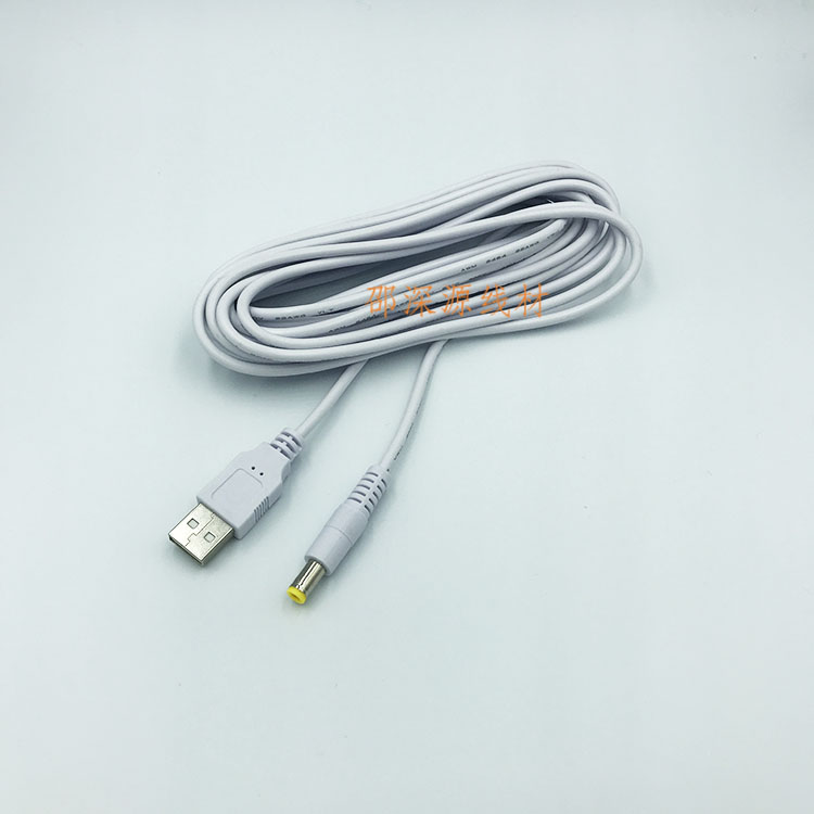 📚 白色USB转DC5.5*2.1DC充电线USB转5521DC全铜电源线 DC转换线5米