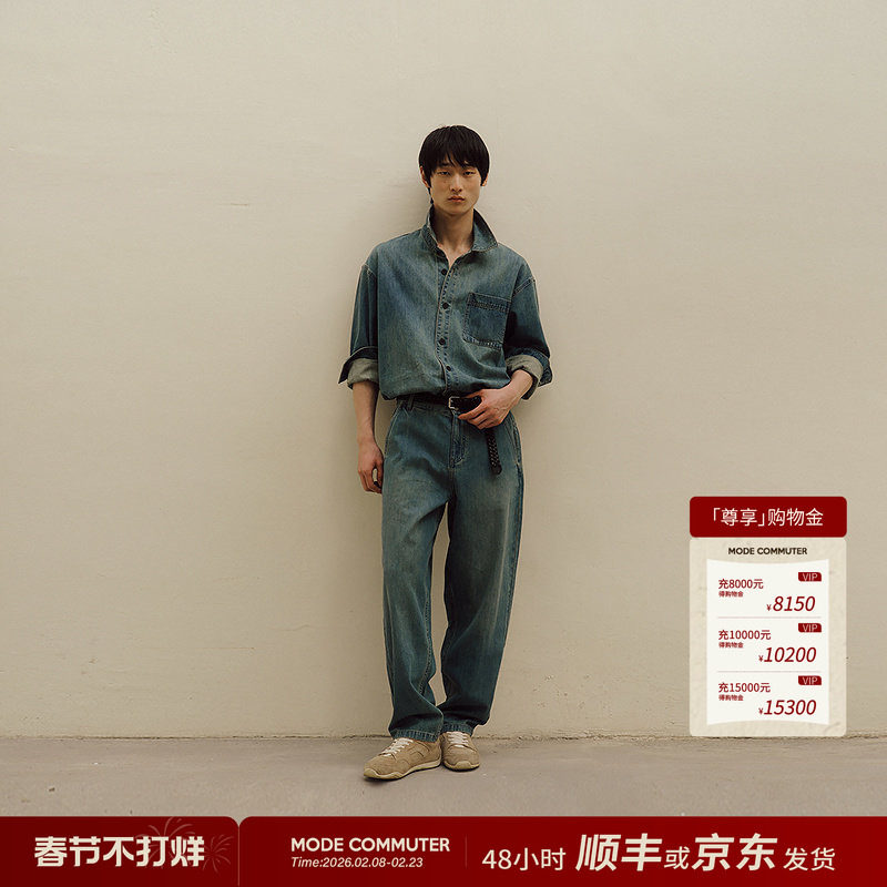 📚 MODE COMMUTER| MC复古水洗时尚复古翻领水洗长袖牛仔衬衫