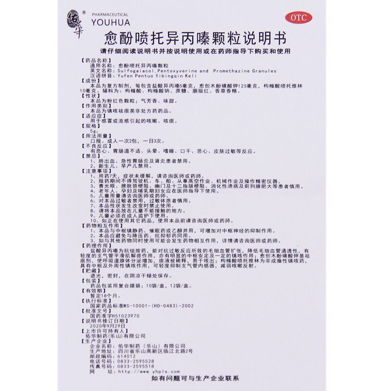 📚 包邮】佑华 愈酚喷托异丙嗪颗粒 10袋 用于感冒引起的咳嗽 咳痰