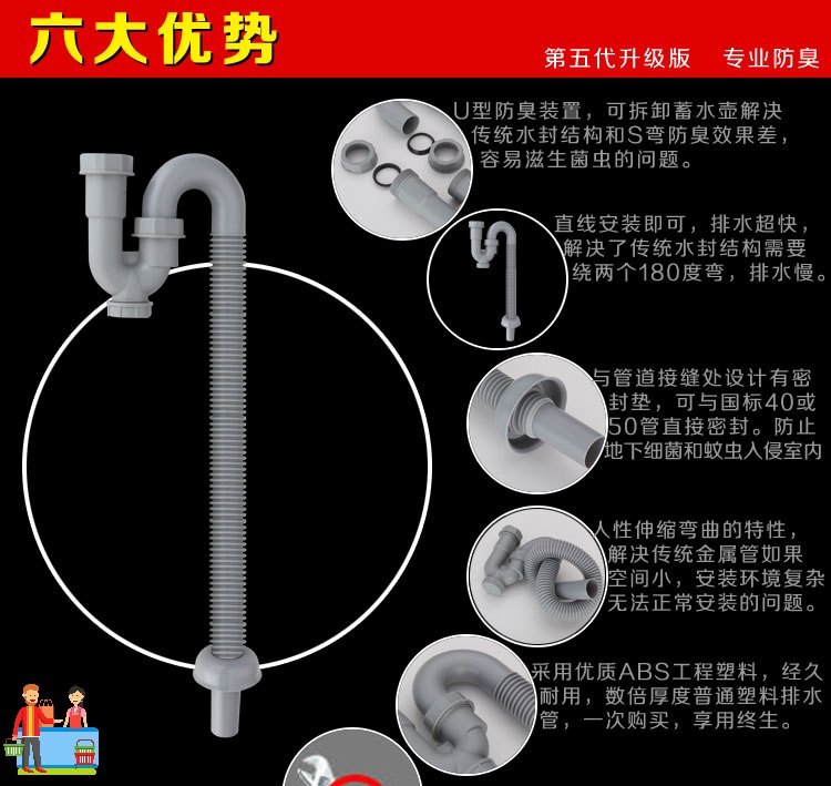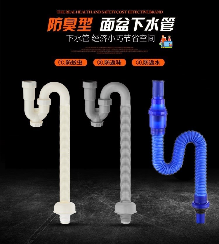 📚 防反味菜盆洗手盆下水管防臭s弯管下水道反水弯密封水池水盆洗面