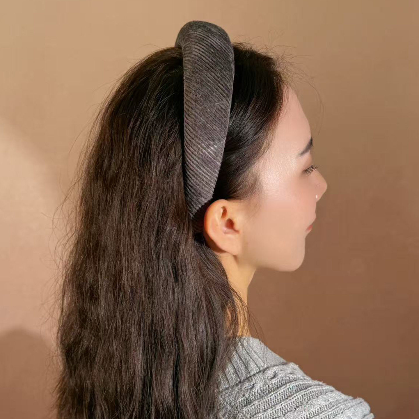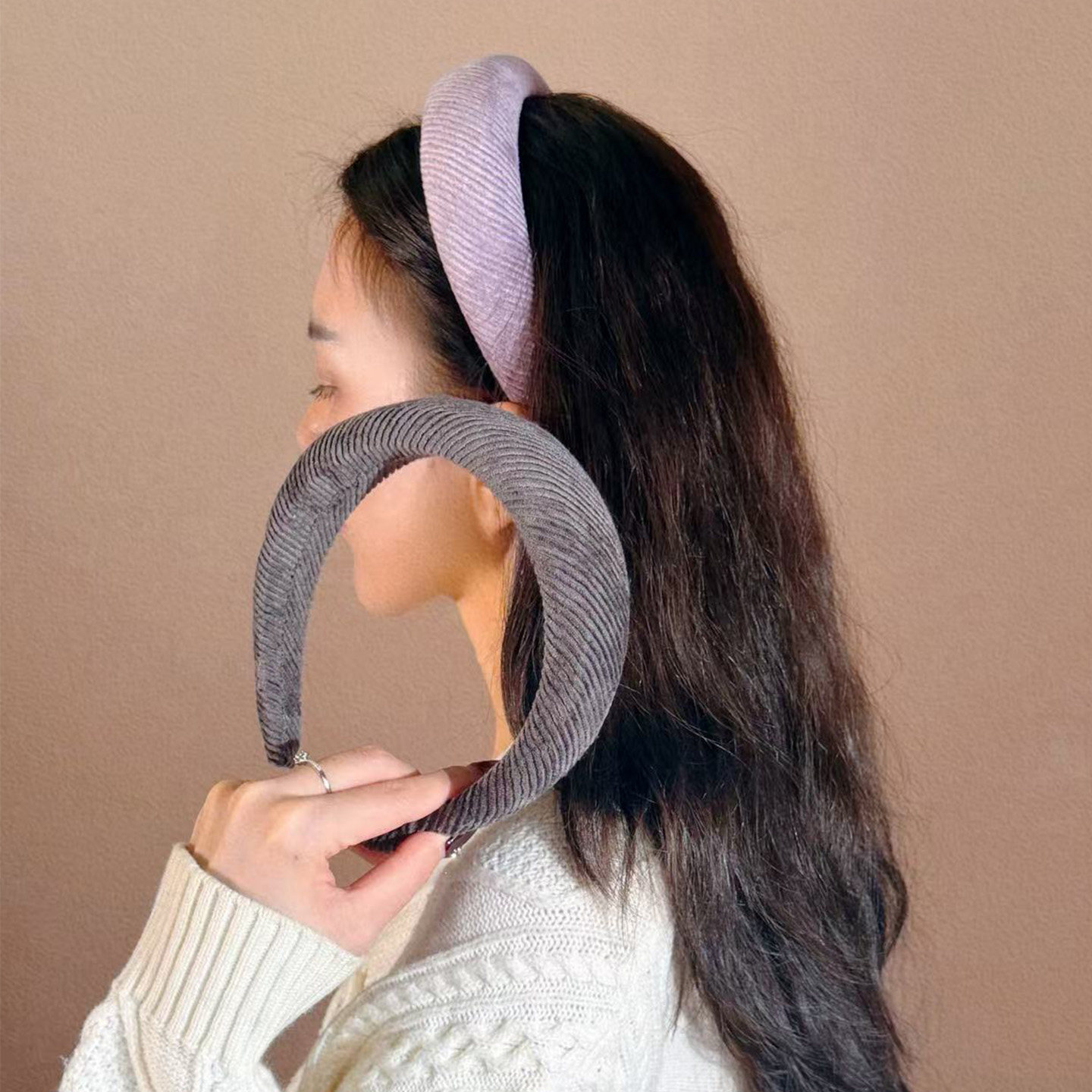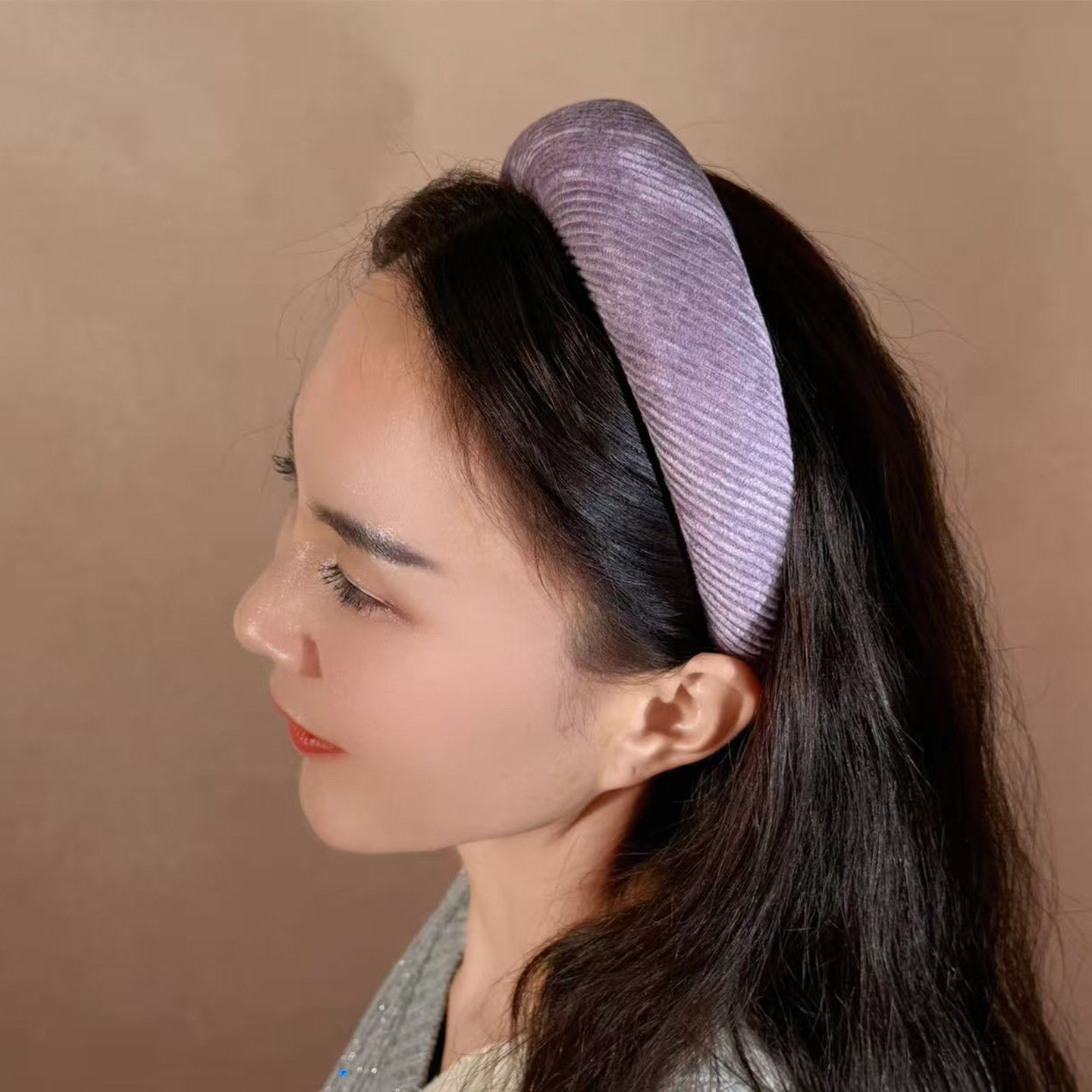 📚 潮时点博主同款灯芯绒发箍女秋冬复古温柔紫宽边头箍增高颅顶发饰