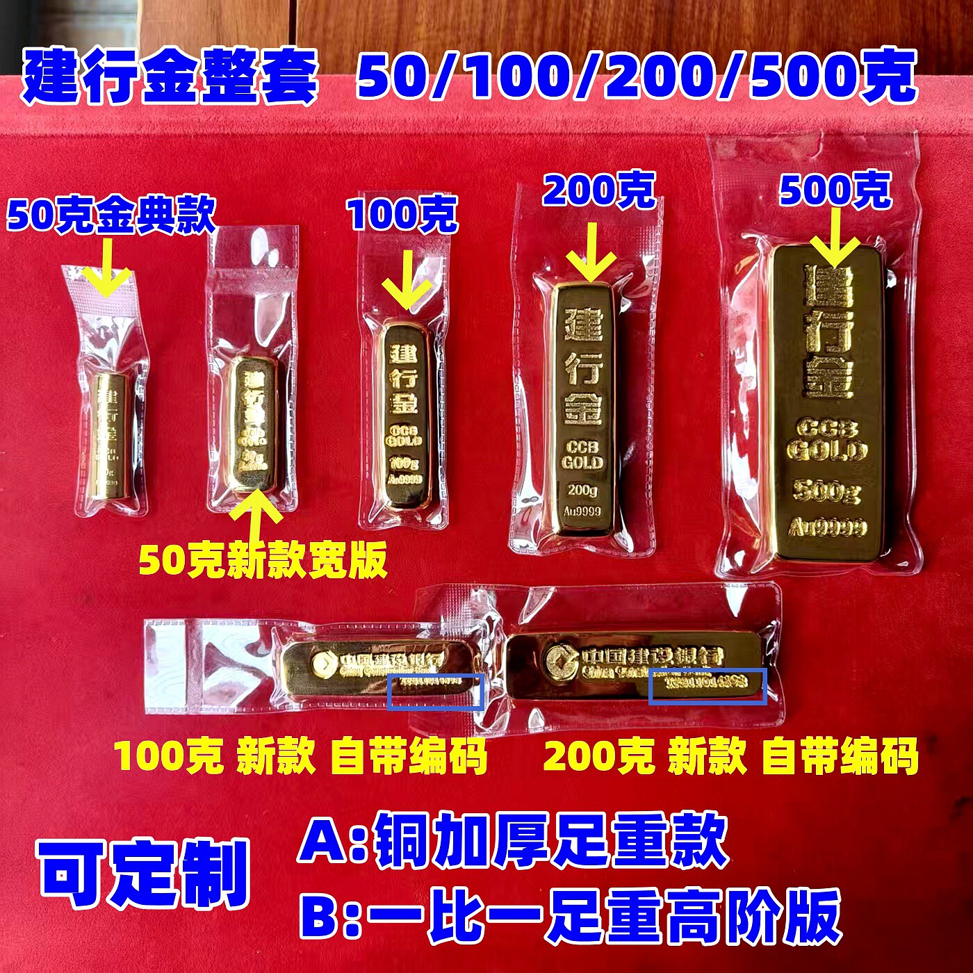 📚 纯铜镀金建行金条100g仿真金条收藏送礼建设银行金条50克样品道具