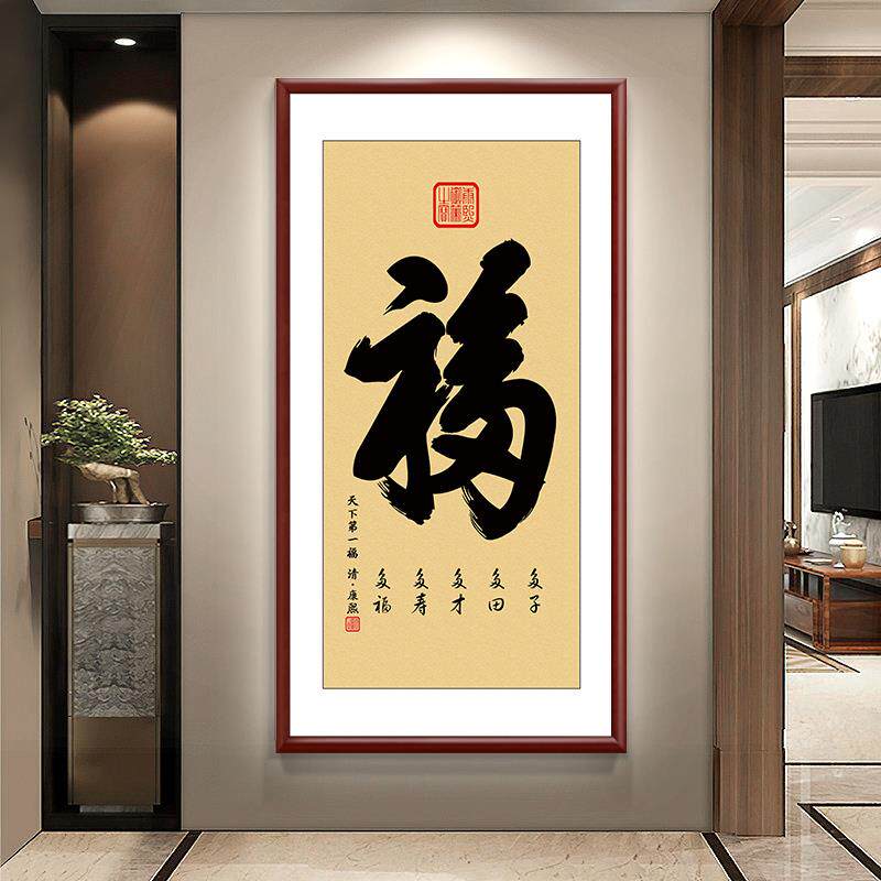 📚 康熙福字玄关挂画画天下福入户走廊竖版背景墙装饰画画家和顺字画