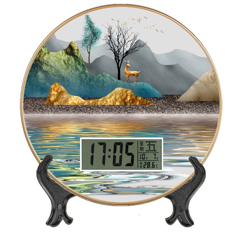 📚 新款圆形带日历座钟家用多功能电子卧室挂钟创意时尚客厅时钟挂表