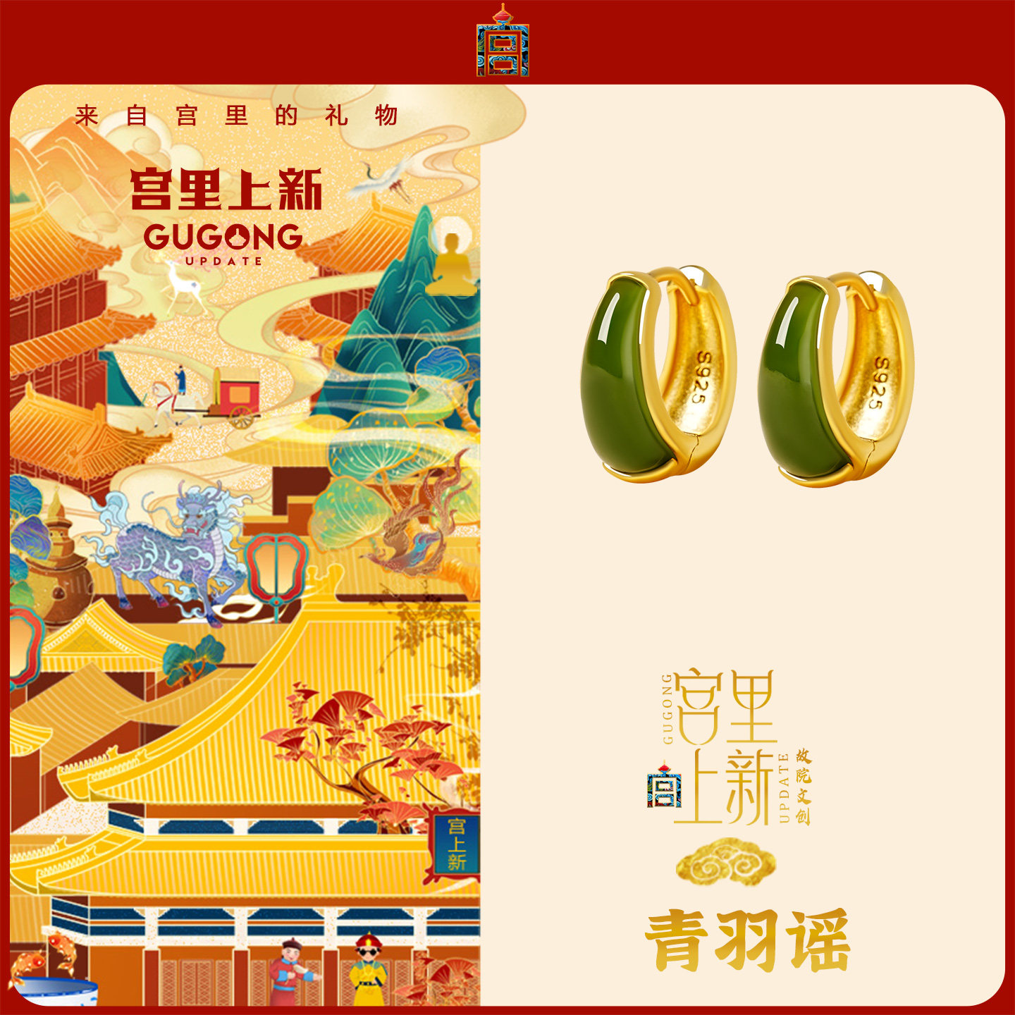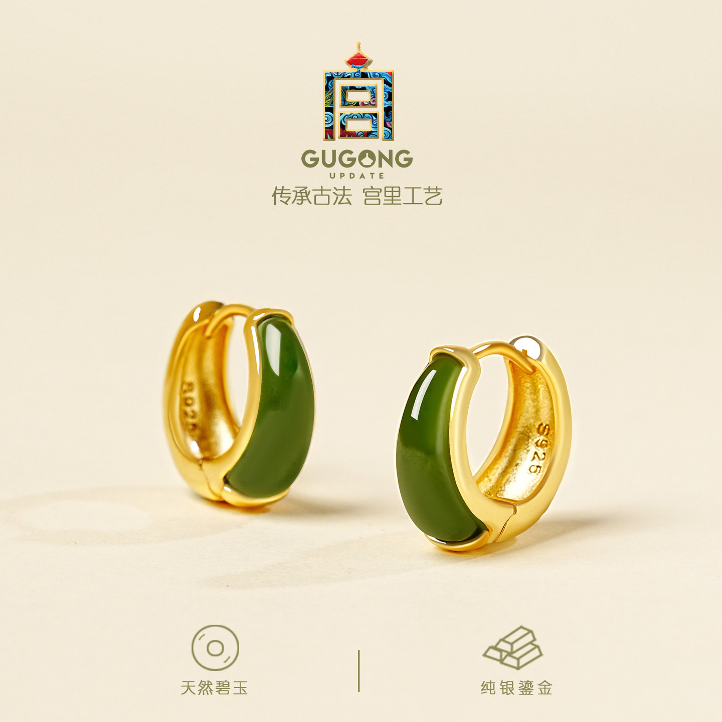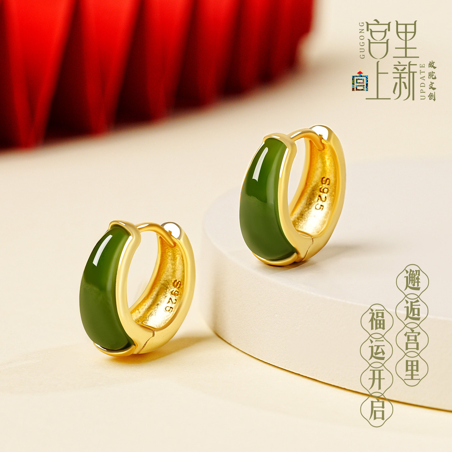 📚 宫里上新和田玉耳饰女天然碧玉耳钉玉石耳环冬季耳圈生日新年礼物
