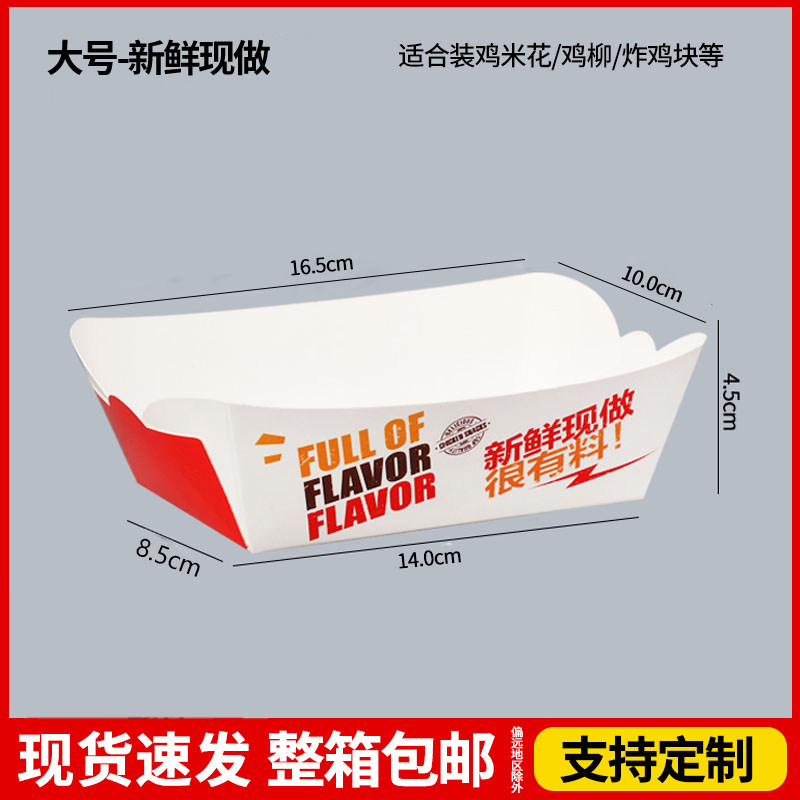 📚 免折船盒一次性长方形鸡米花鸡块鸡排鸡腿鸡柳外卖商用船形打包盒