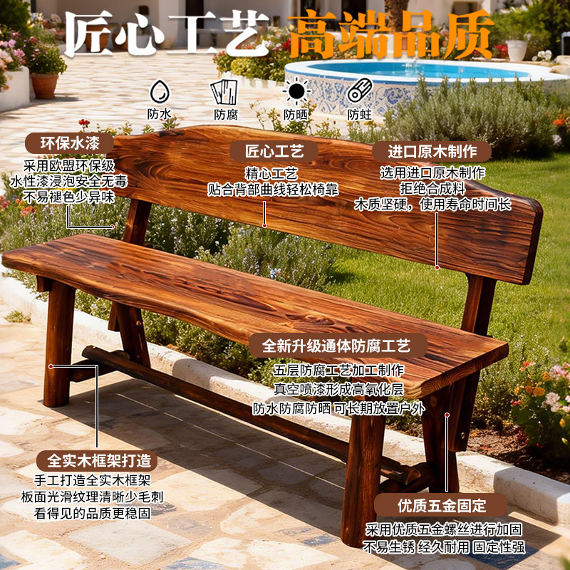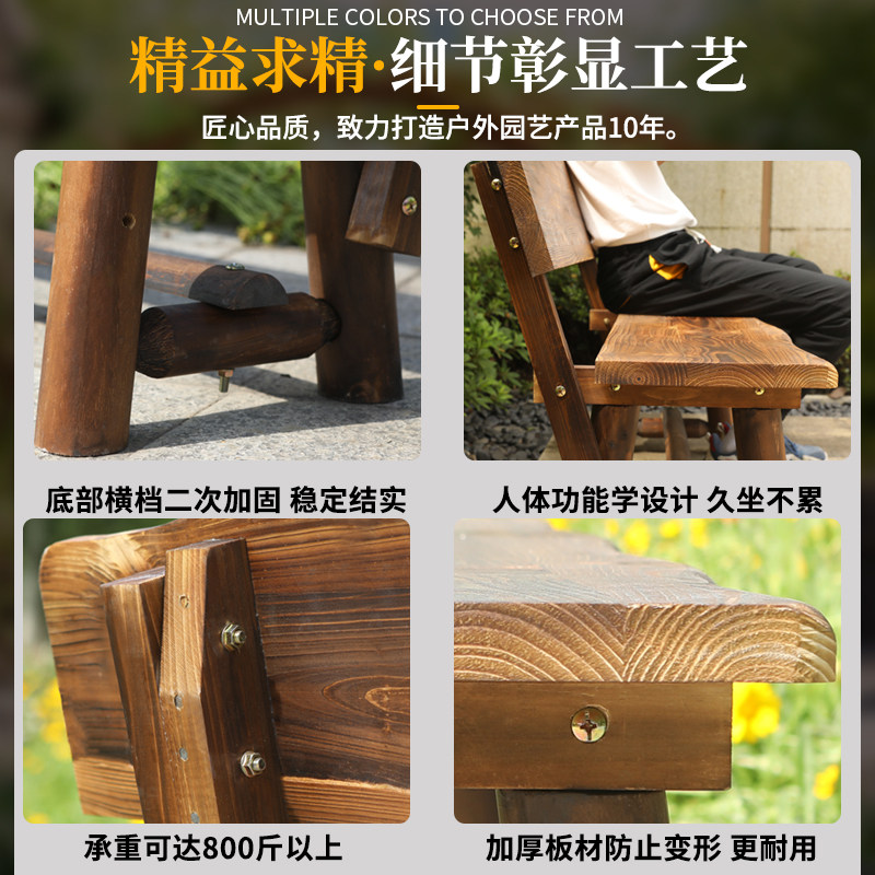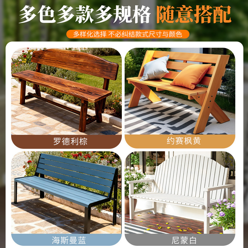 📚 公园实木长椅子长条双人木质靠背椅露天郊外椅庭院木头靠背长条凳