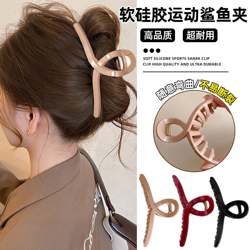 📚 软硅胶鲨鱼夹大号发量多抓夹女2025新款后脑勺安全防摔盘发夹头饰