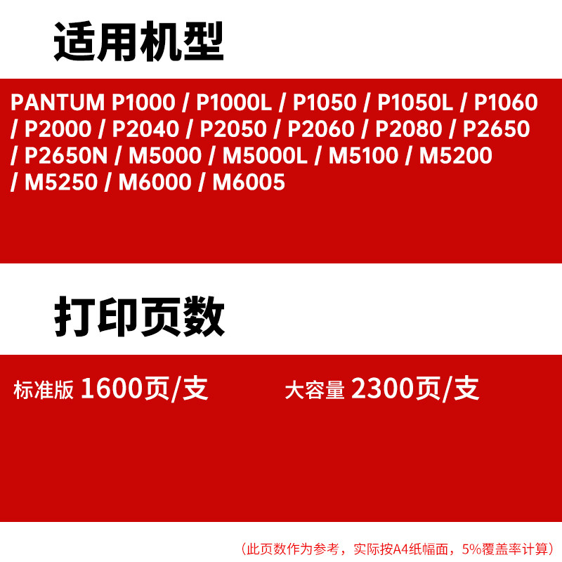 📚 适用奔图M5000硒鼓PD-200H P1000L P1050 P2000 P2050 P2060 M5100 M5200 M6000 M6005墨盒P2650 M5250 P2080
