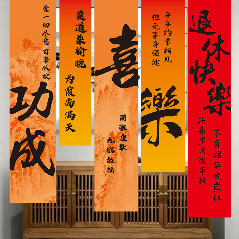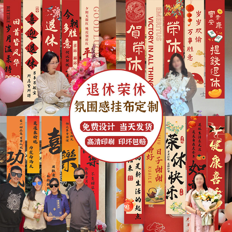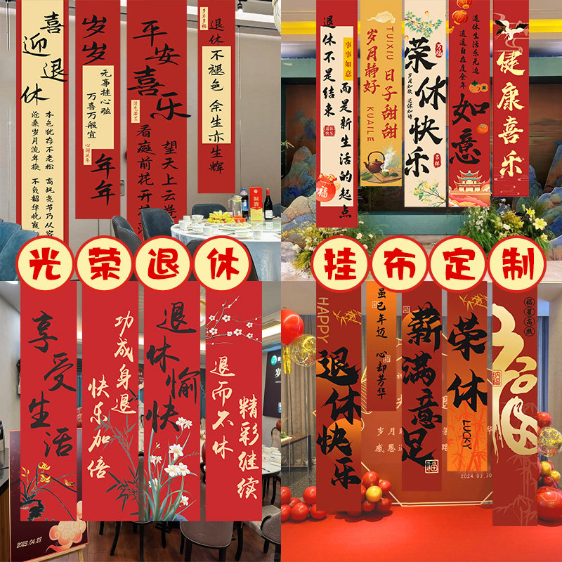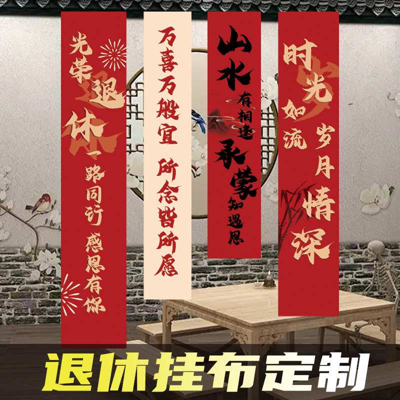 📚 退休条幅定制教师光荣退役竖拉条装饰同事离职欢送会仪式旗帜布置战友聚会背景横幅退伍军人欢迎回家彩色挂布