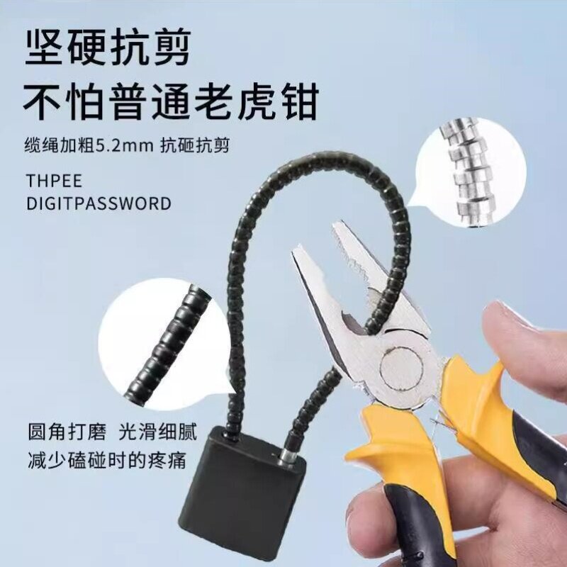 📚 钢丝绳挂锁链条软锁家用橱柜子门长条挂锁细钢丝锁头盔锁密码钢缆