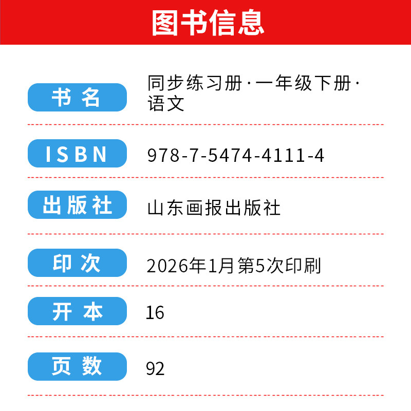📚 2026春新版1一年级语文同步练习册下册RJ人教版统编版一年级语文练习册下册教材同步配套用书山东画报出版社