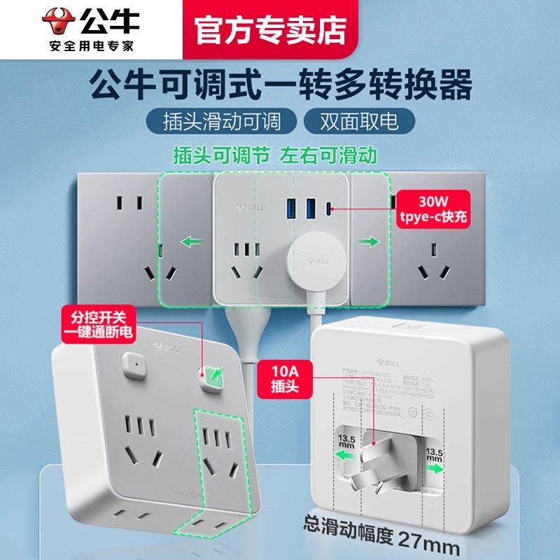 💥"公牛86型扩展插座分控开关面板一转四多功能电源多孔位插头转换器,惊艳你的生活!券后价29.3,爱不释手!"