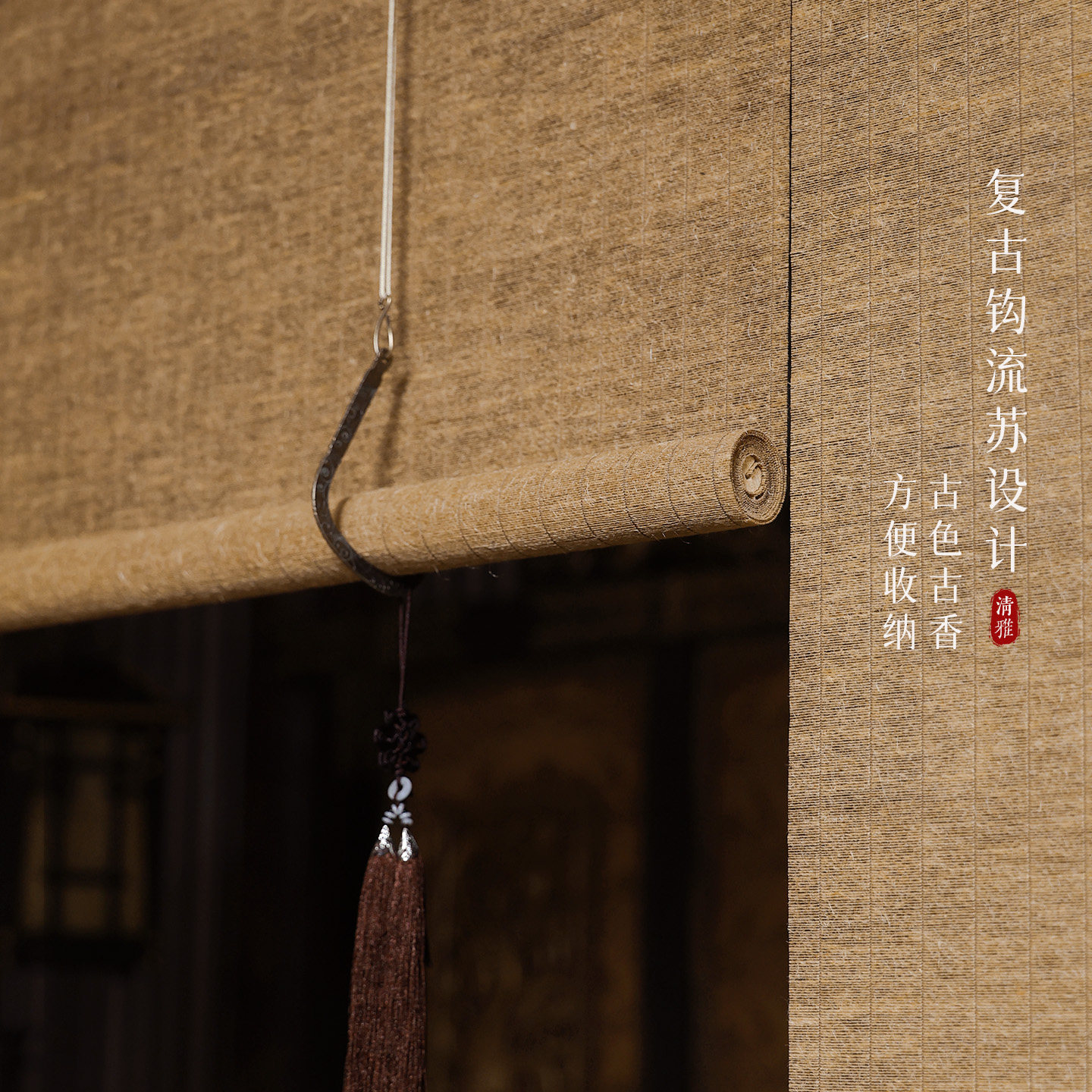 📚 宋式美学苎麻草卷帘新中式门帘阳台遮阳帘茶室亚麻禅意隔断帘窗帘